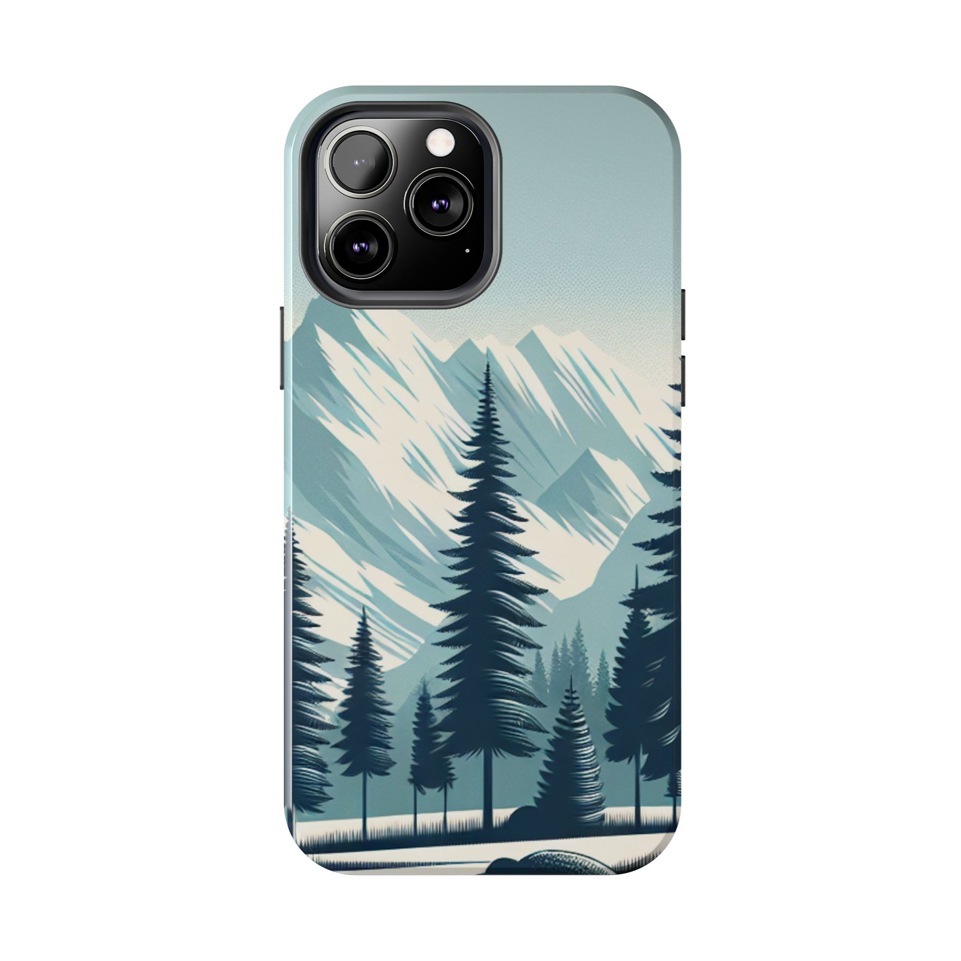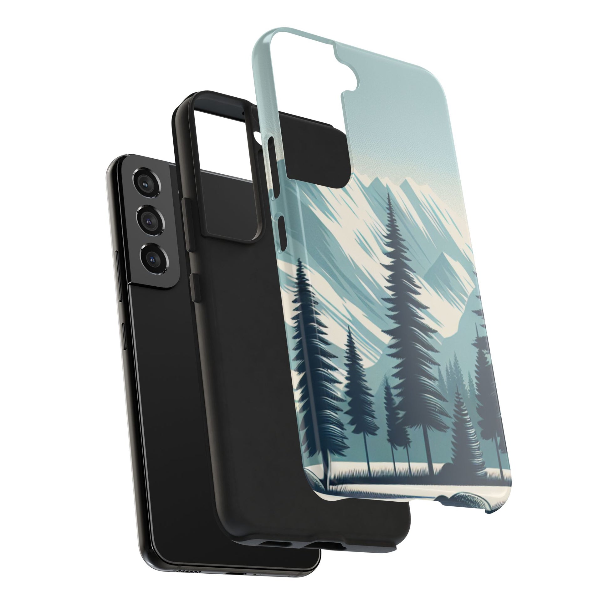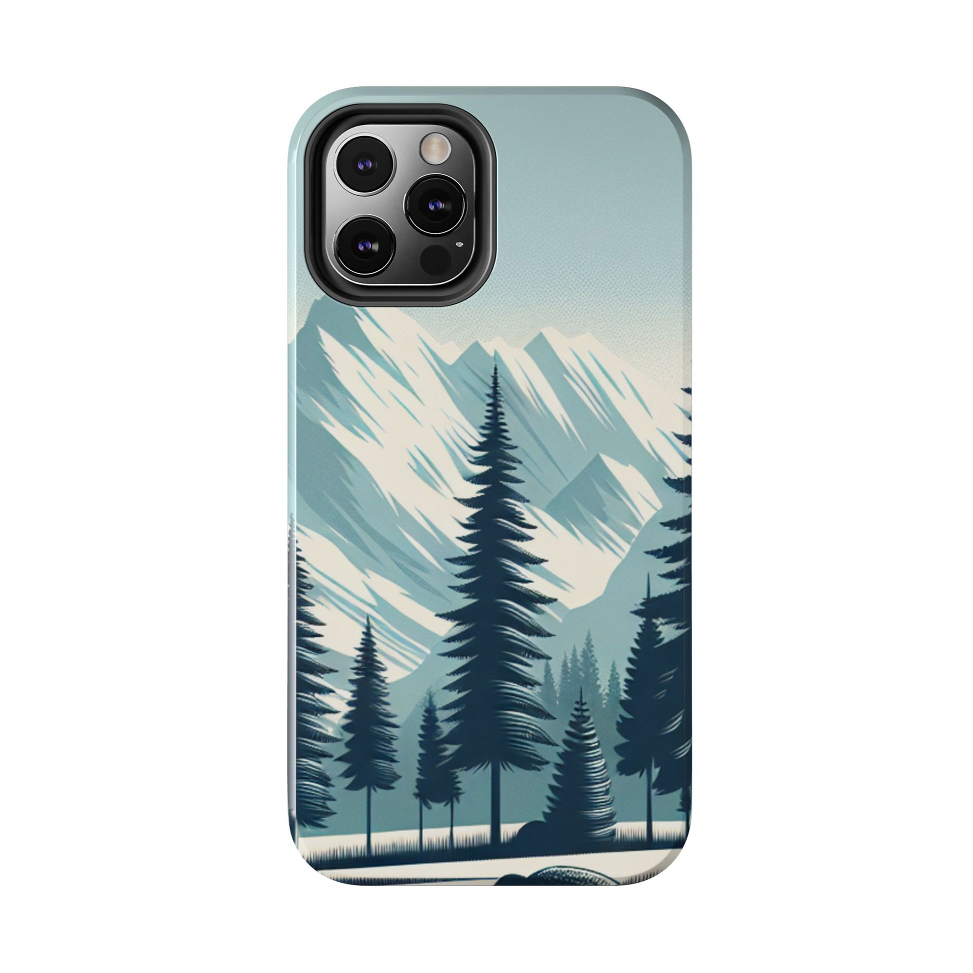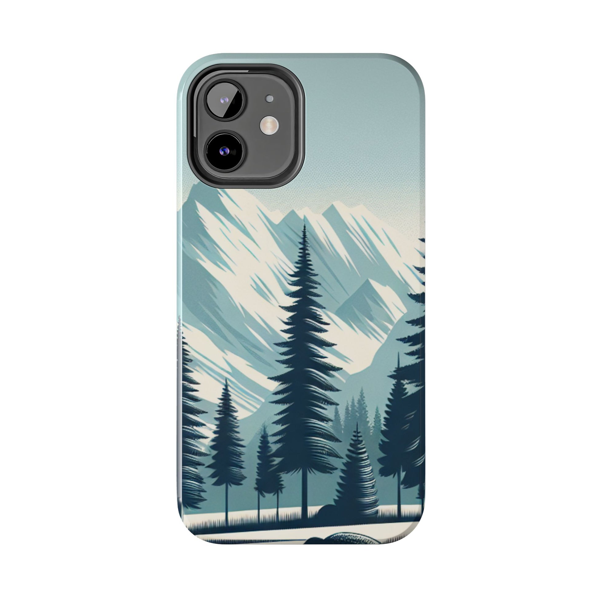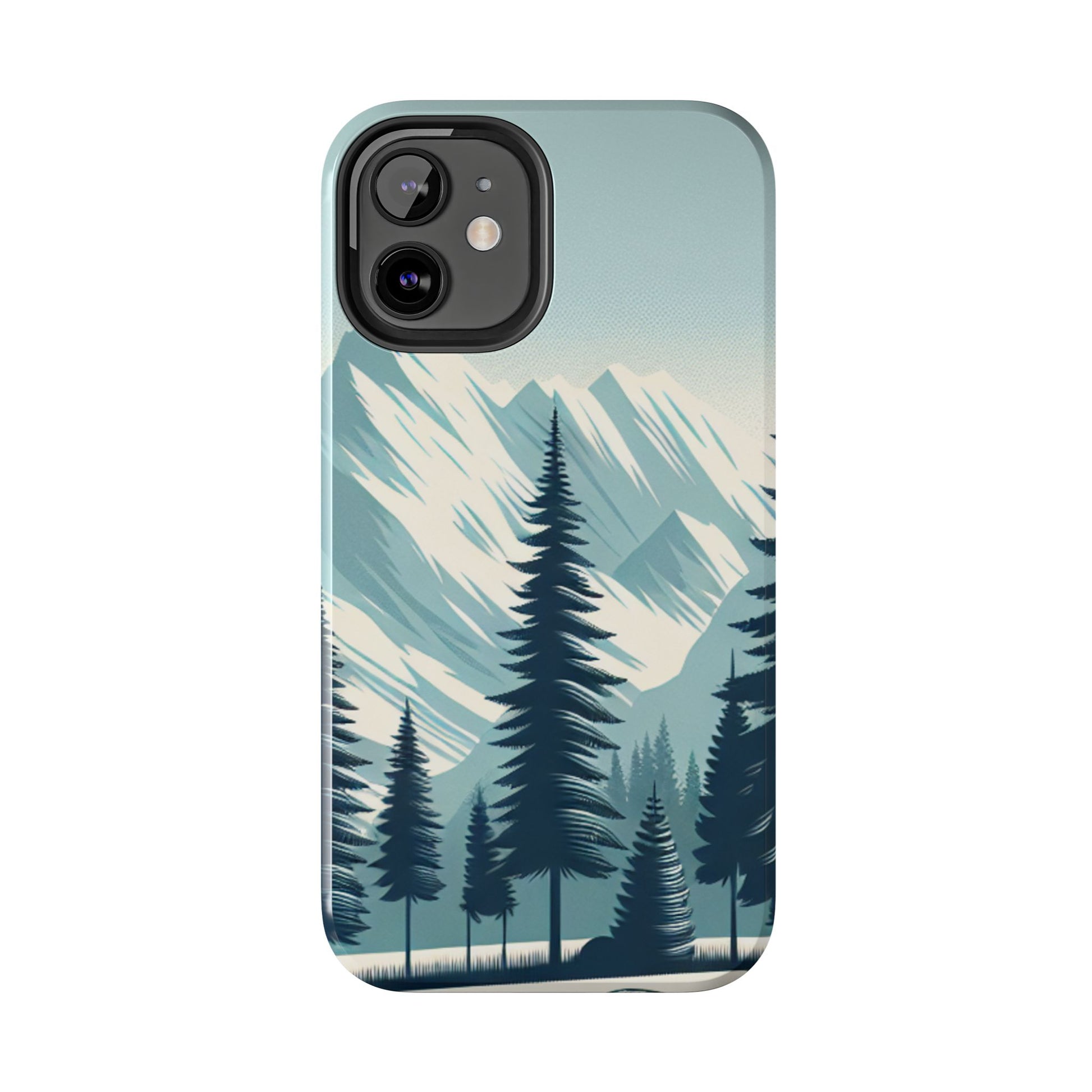 冒険が待っているタフな携帯電話ケース - 雪山の頂上と松の木のデザイン