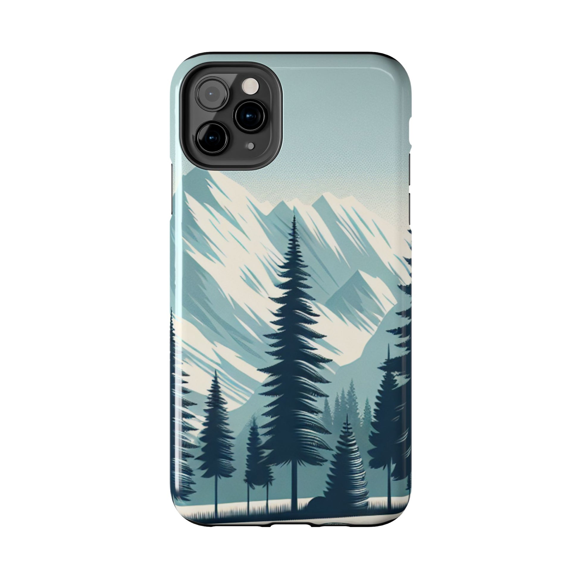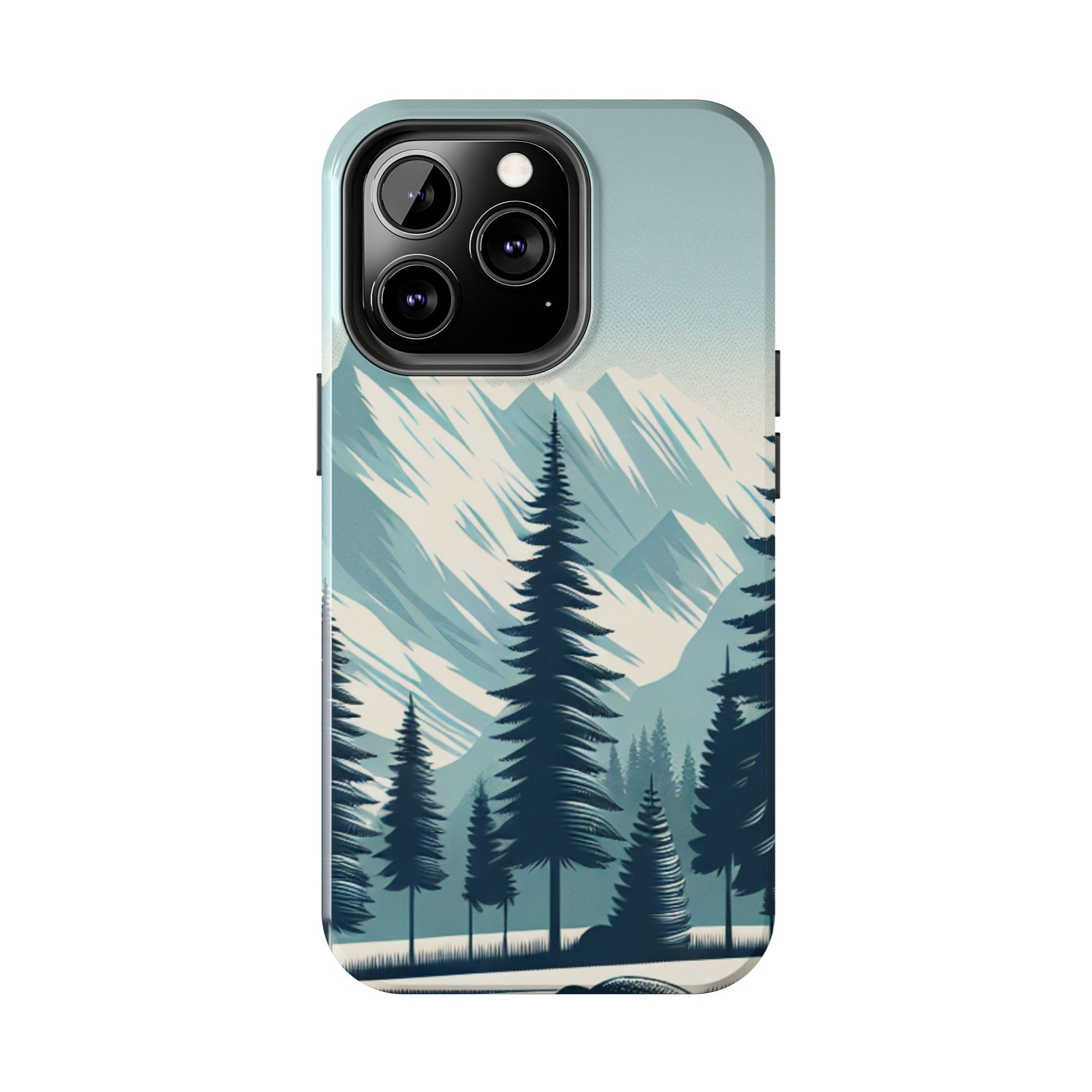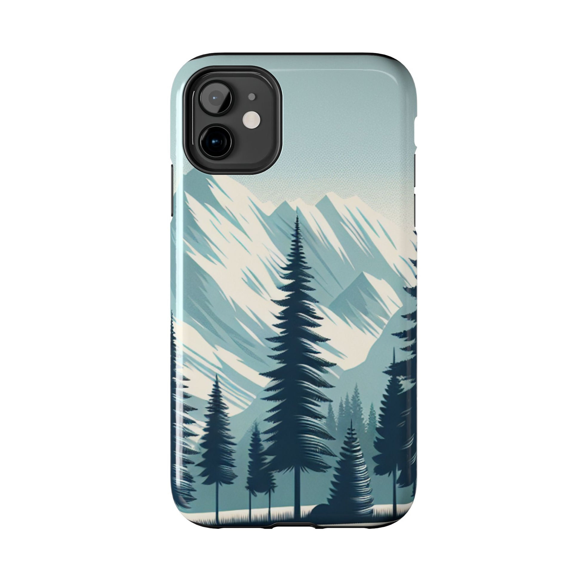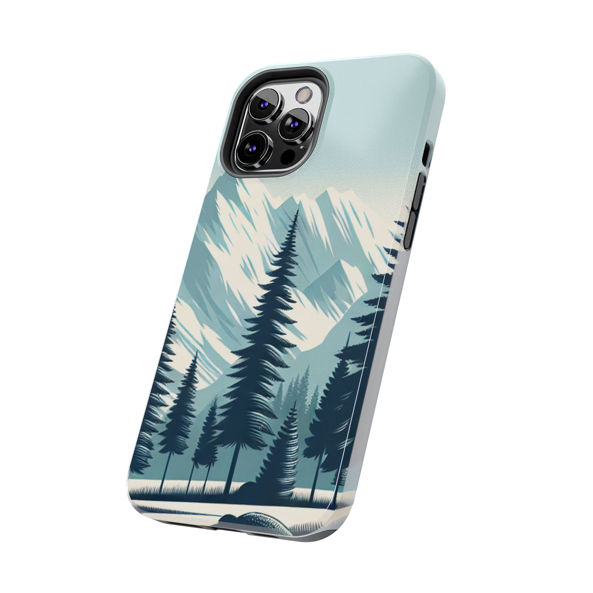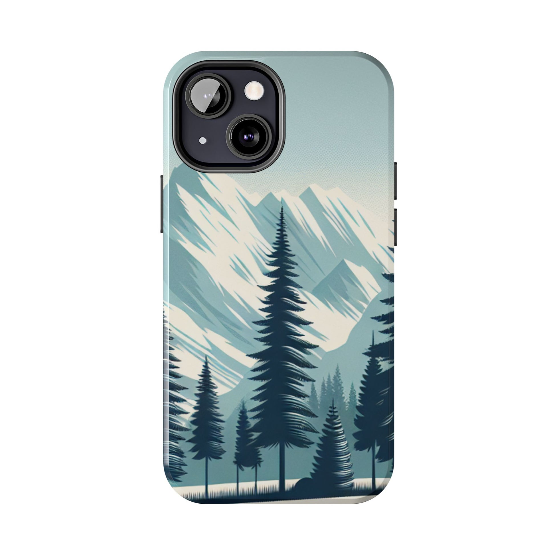 冒険が待っているタフな携帯電話ケース - 雪山の頂上と松の木のデザイン