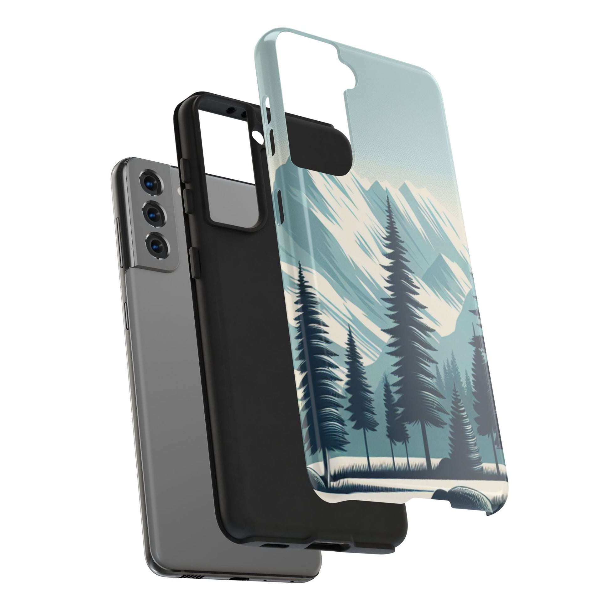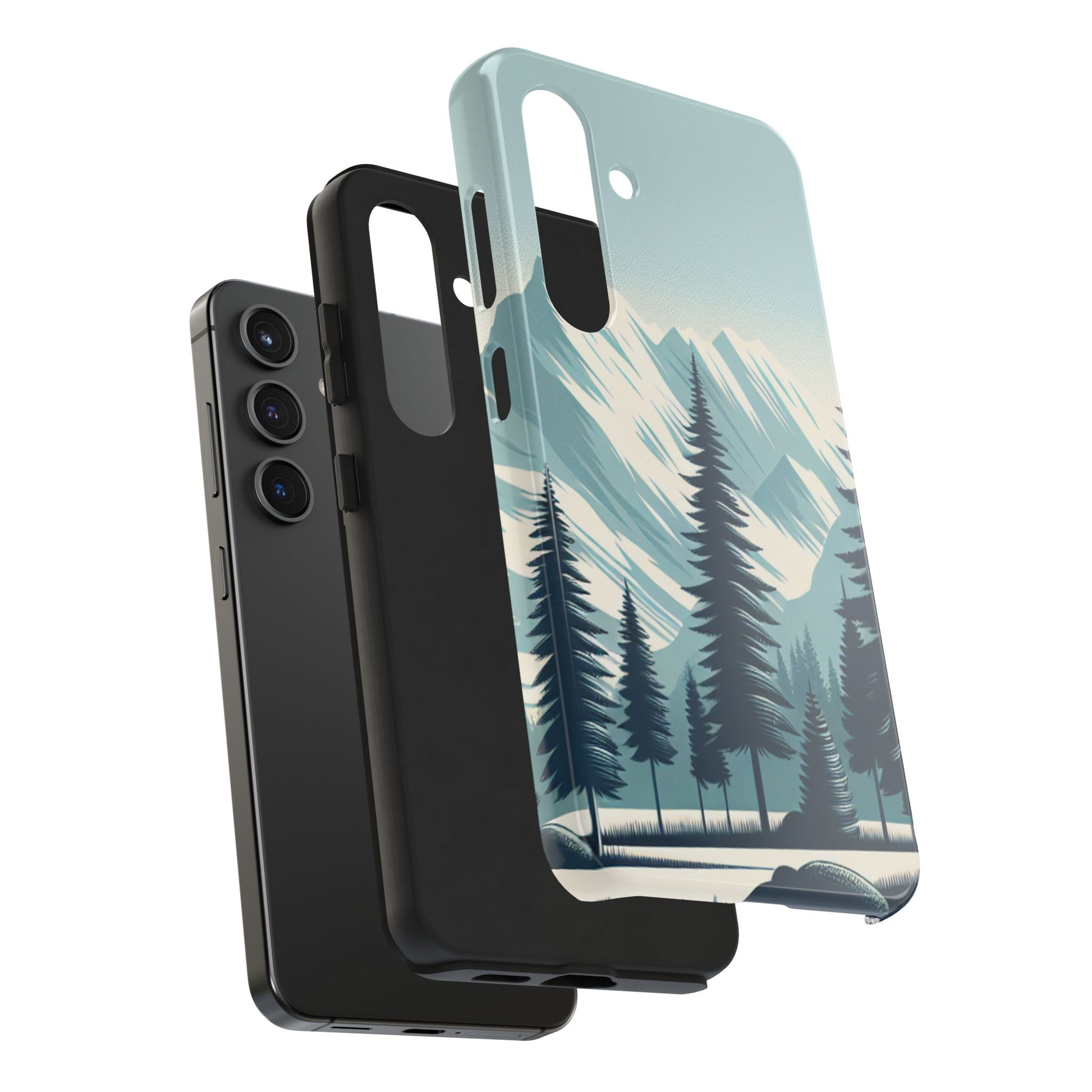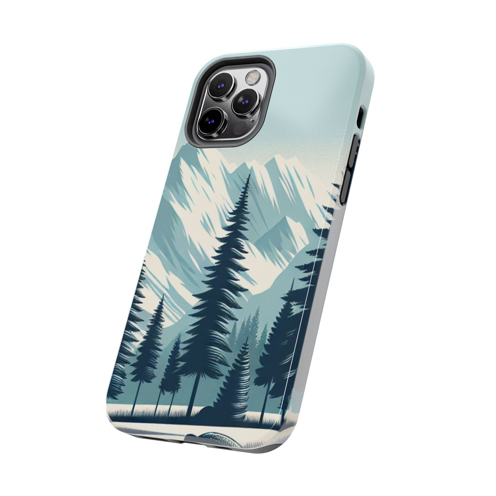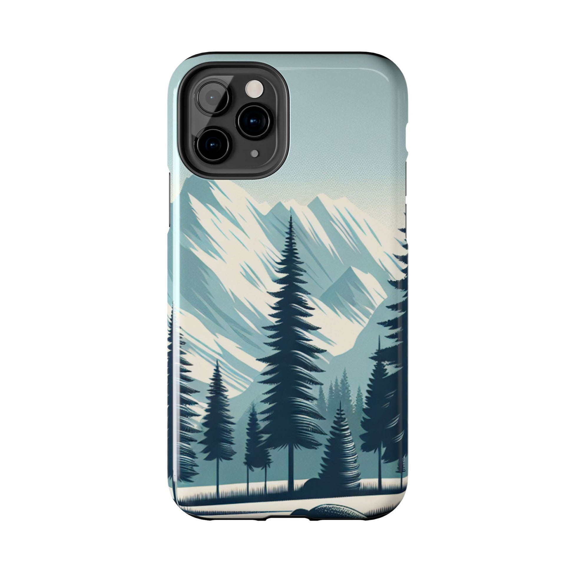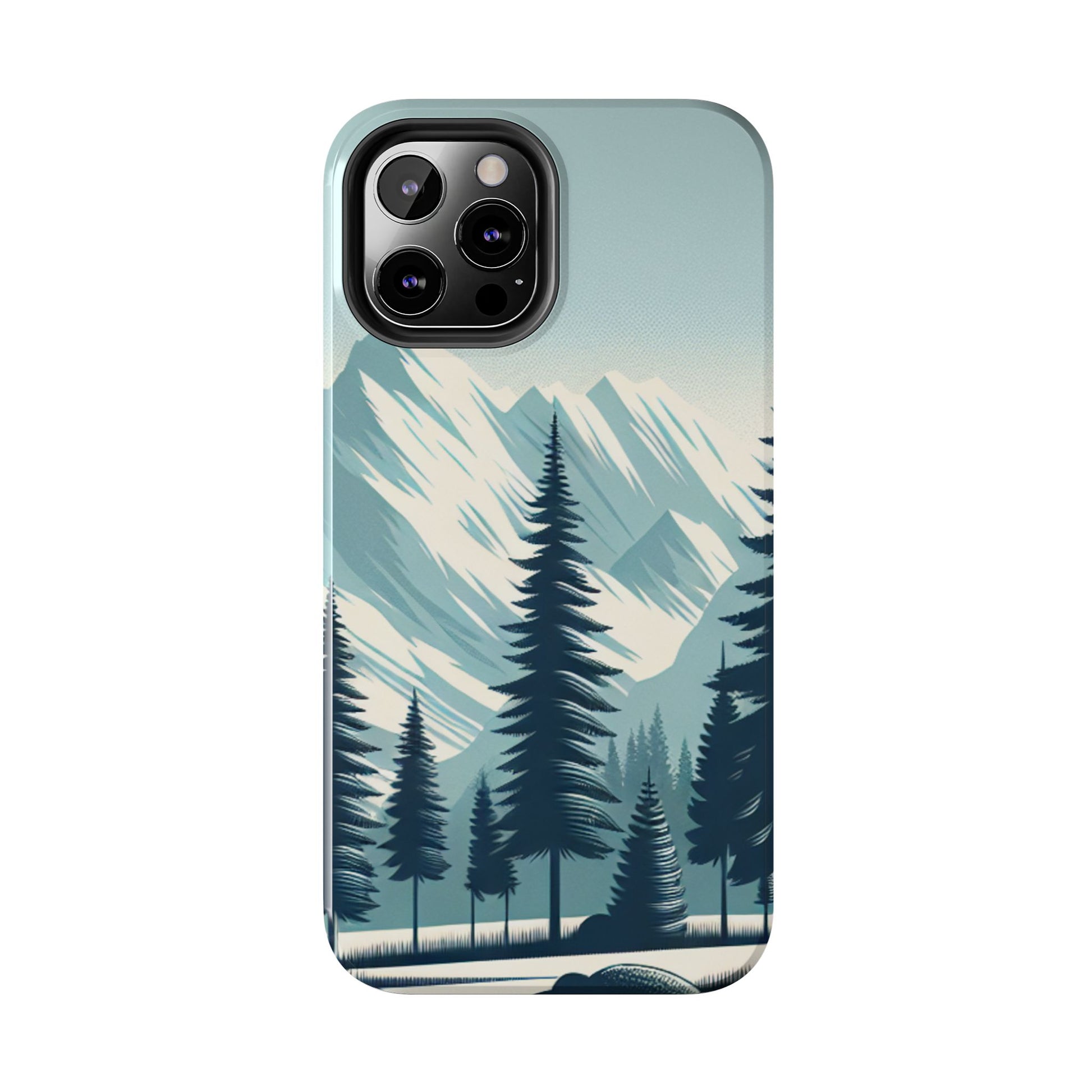 冒険が待っているタフな携帯電話ケース - 雪山の頂上と松の木のデザイン
