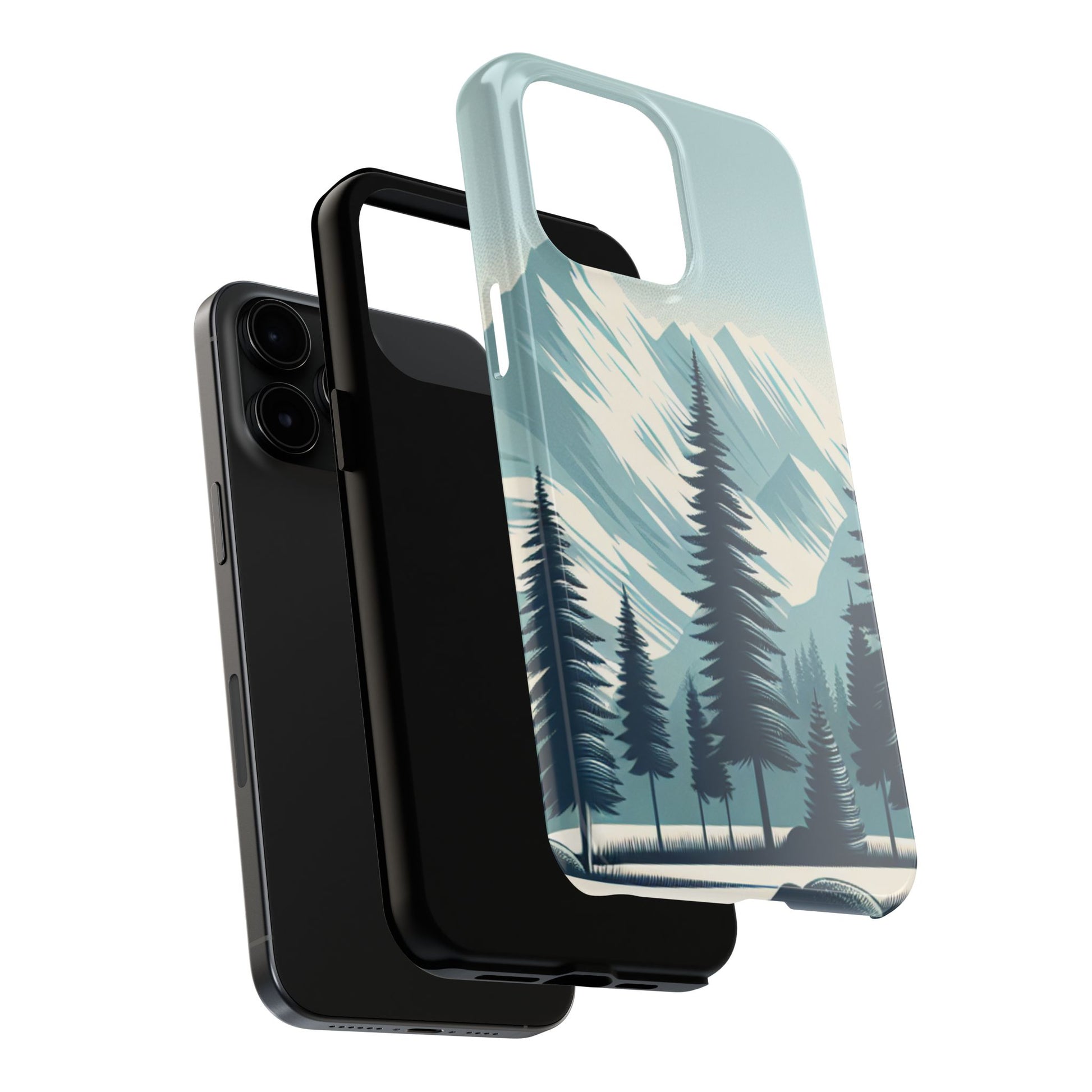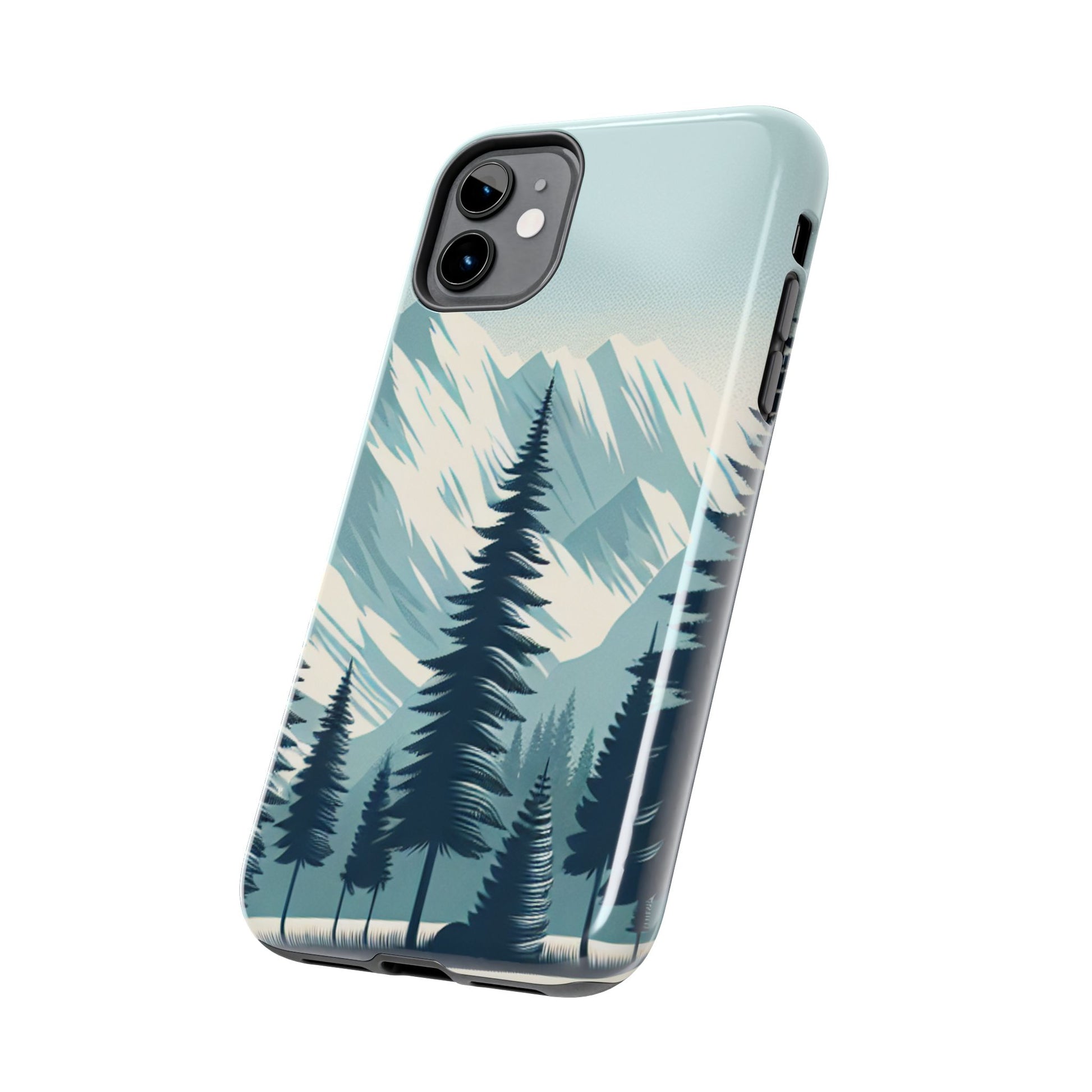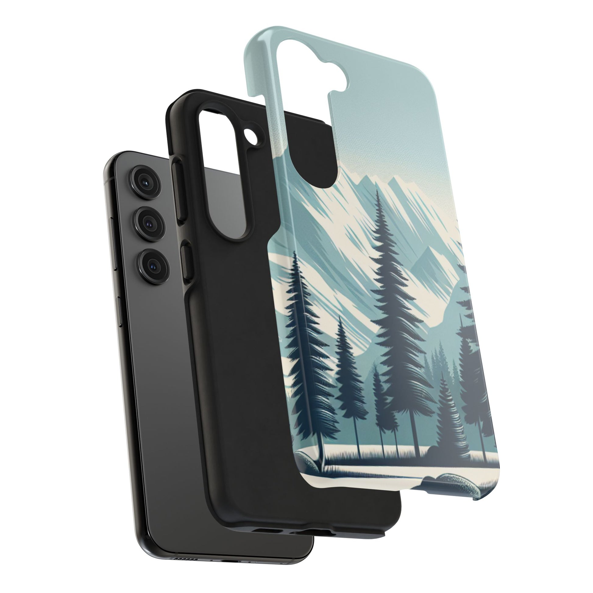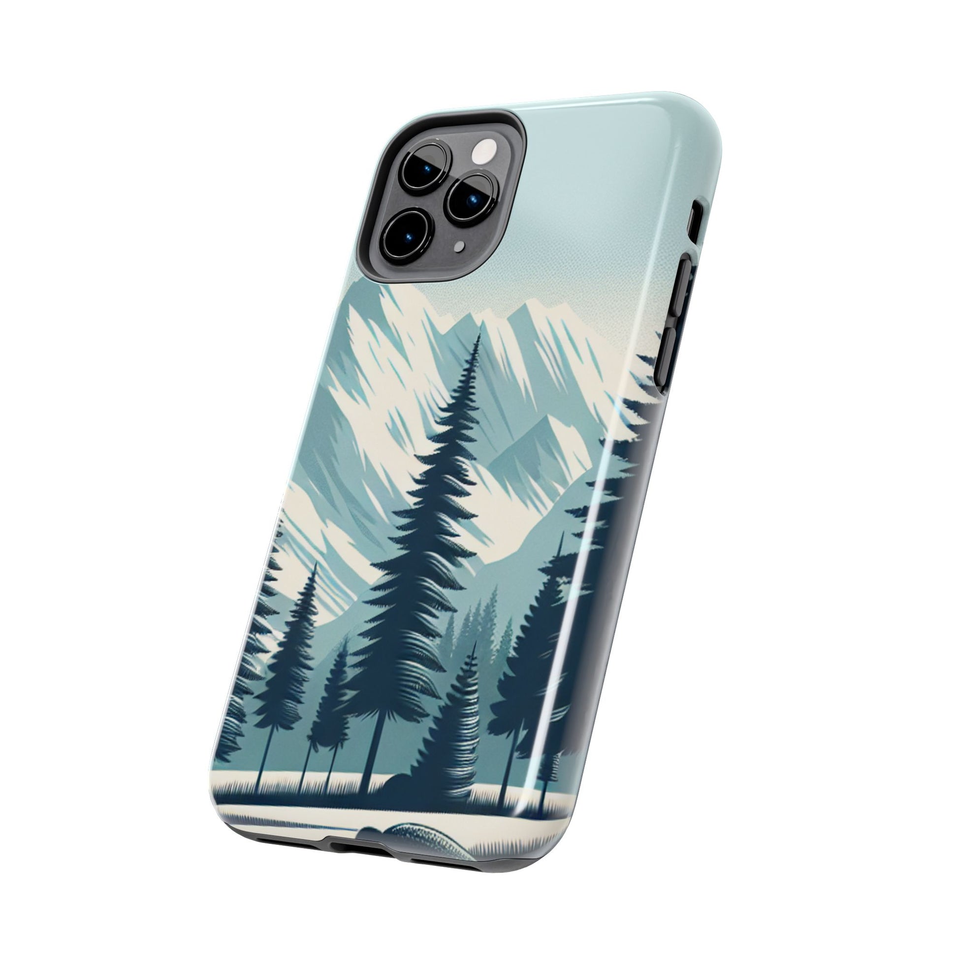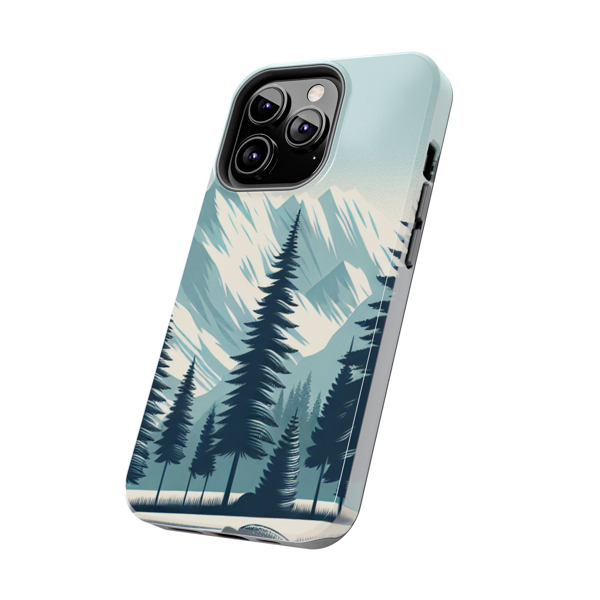 冒険が待っているタフな携帯電話ケース - 雪山の頂上と松の木のデザイン