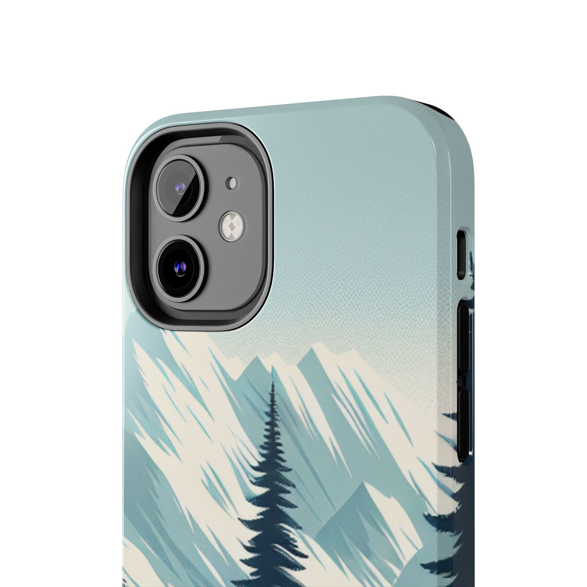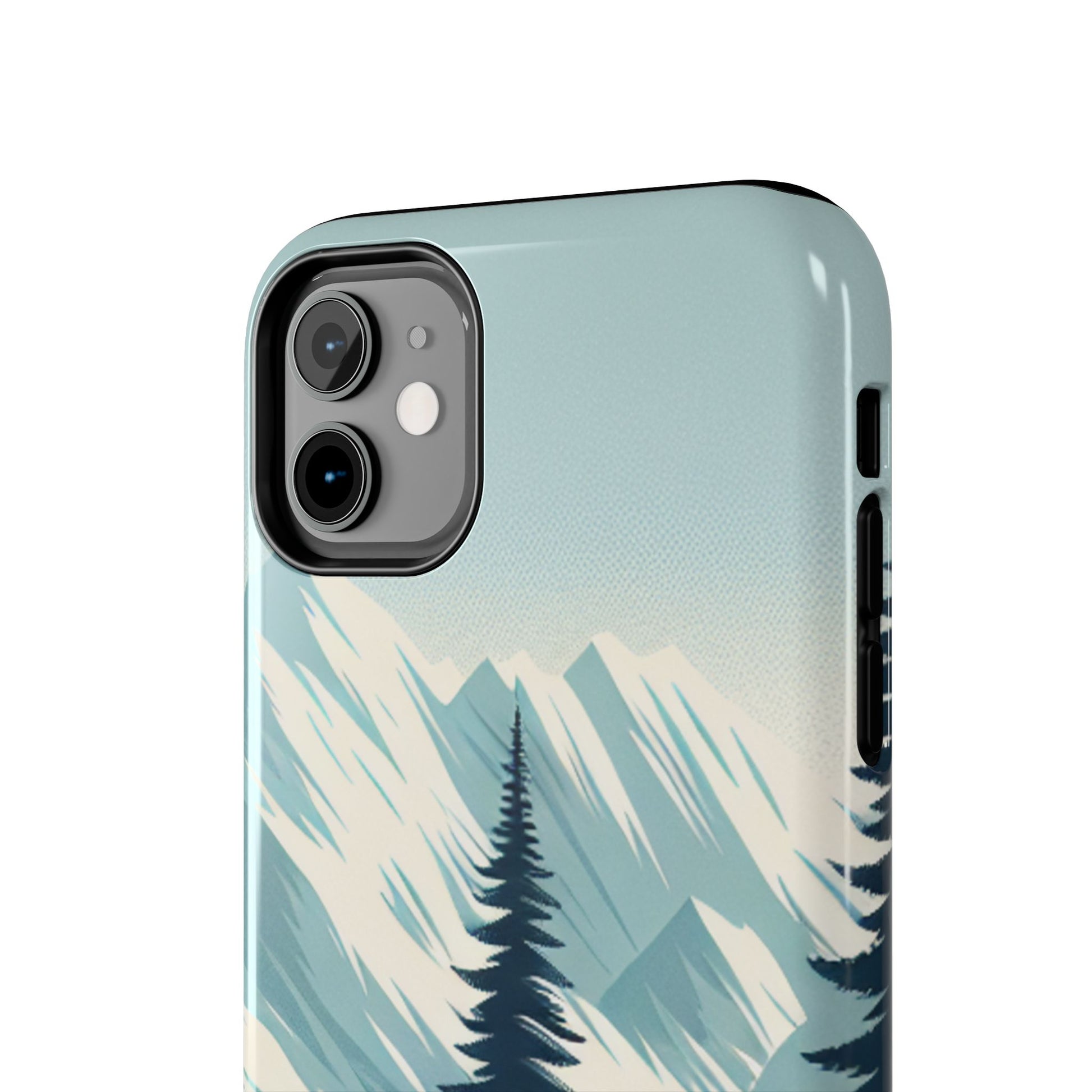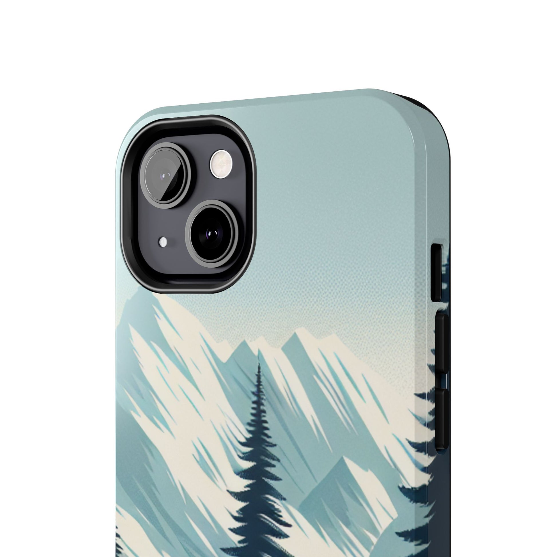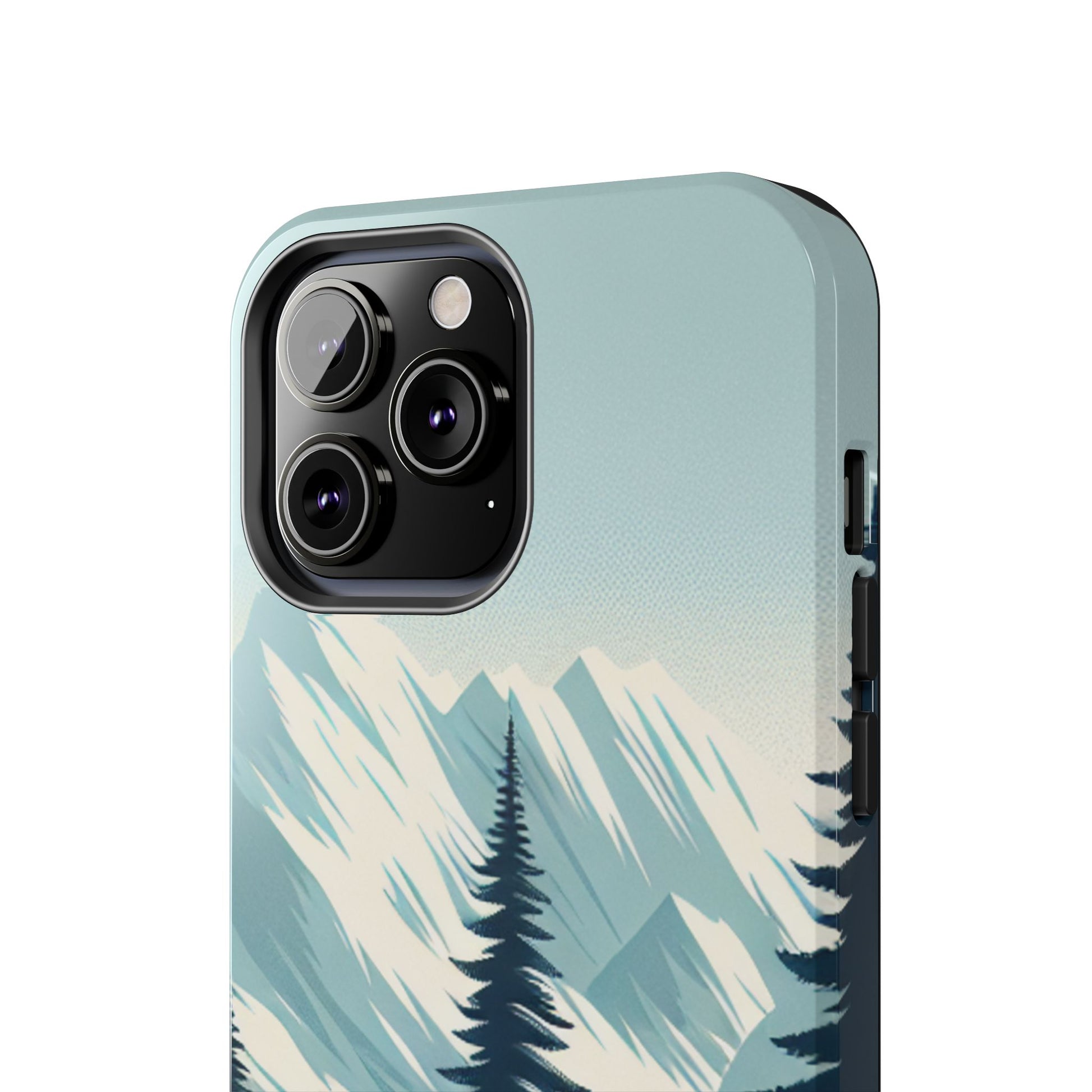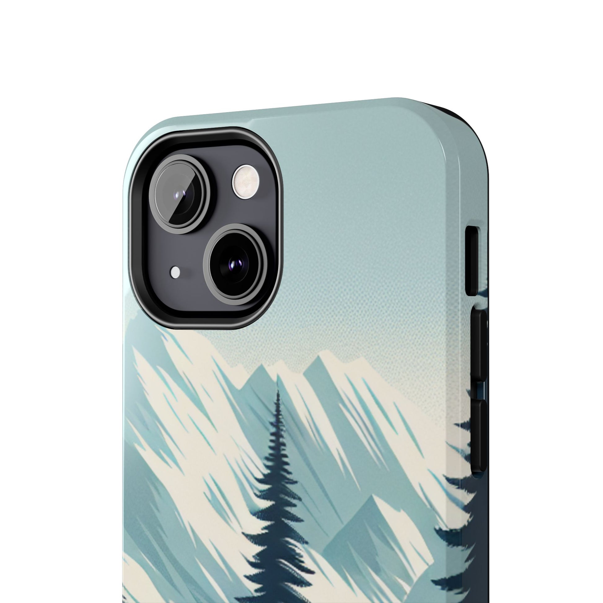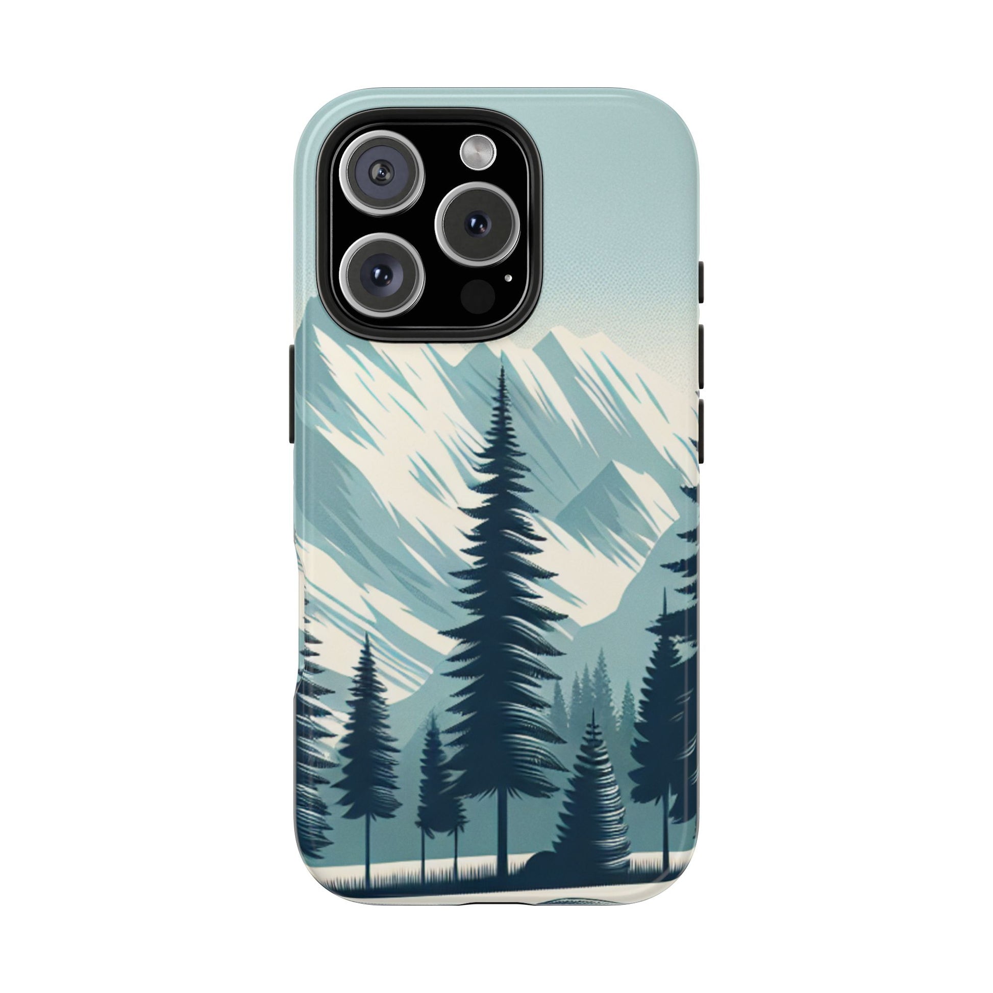 冒険が待っているタフな携帯電話ケース - 雪山の頂上と松の木のデザイン
