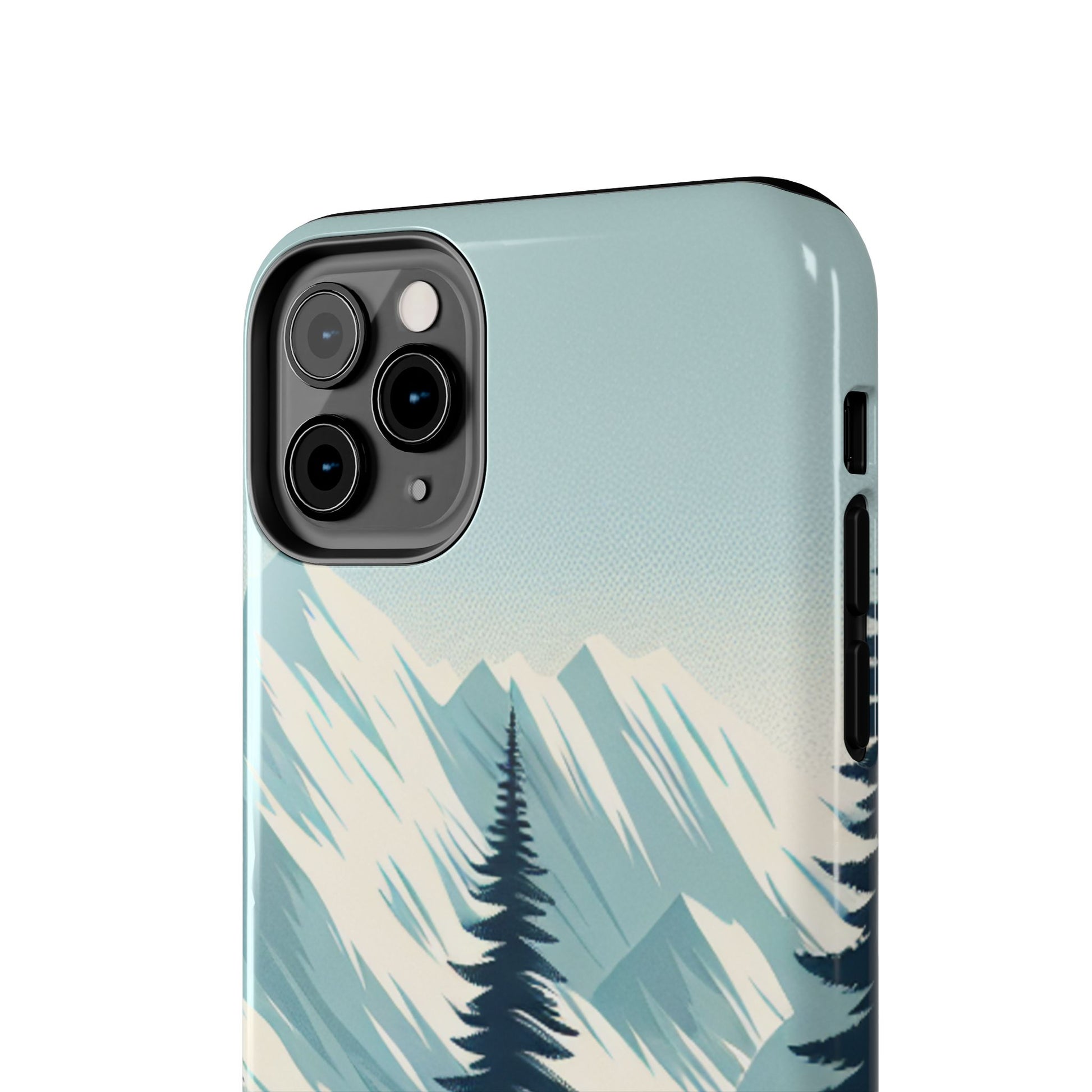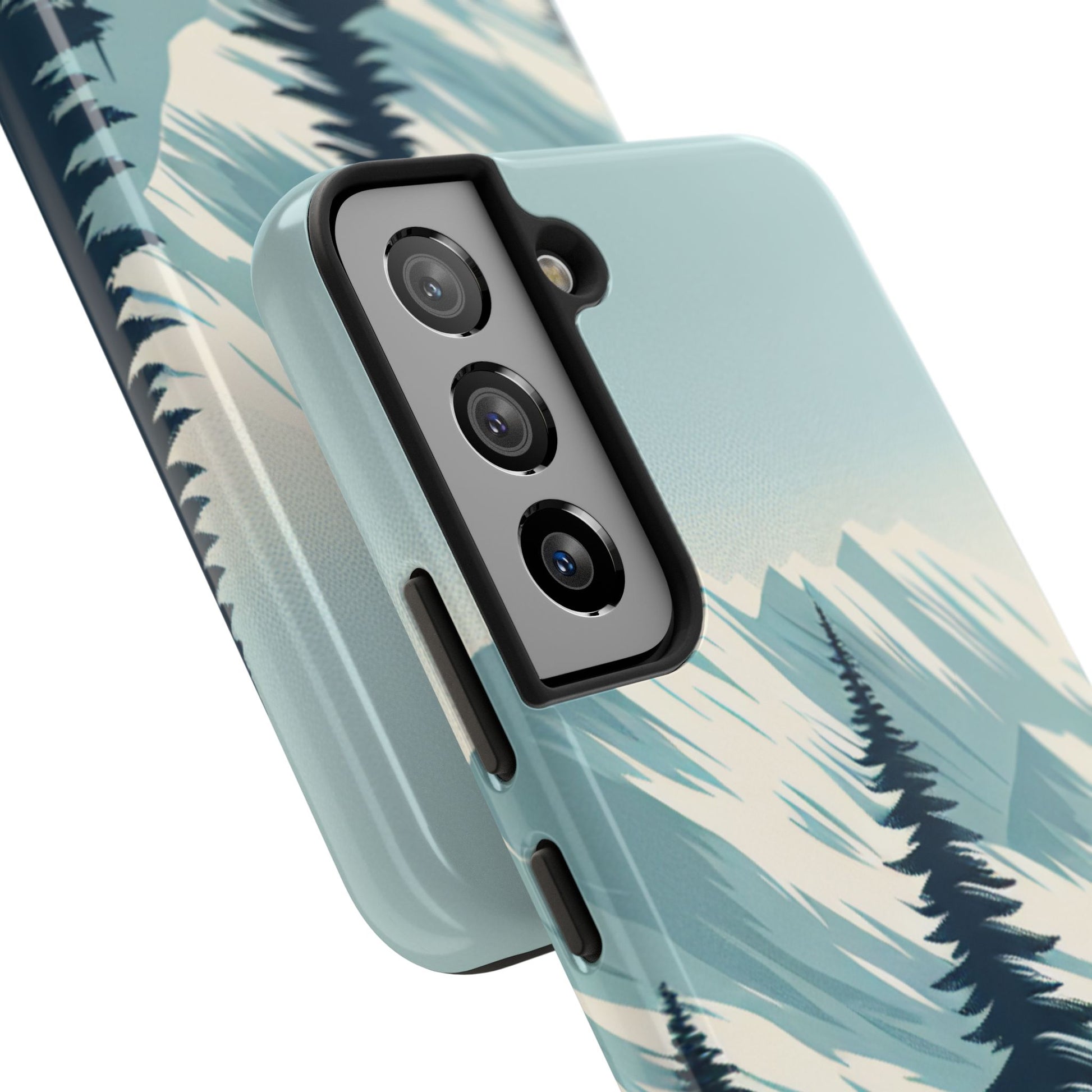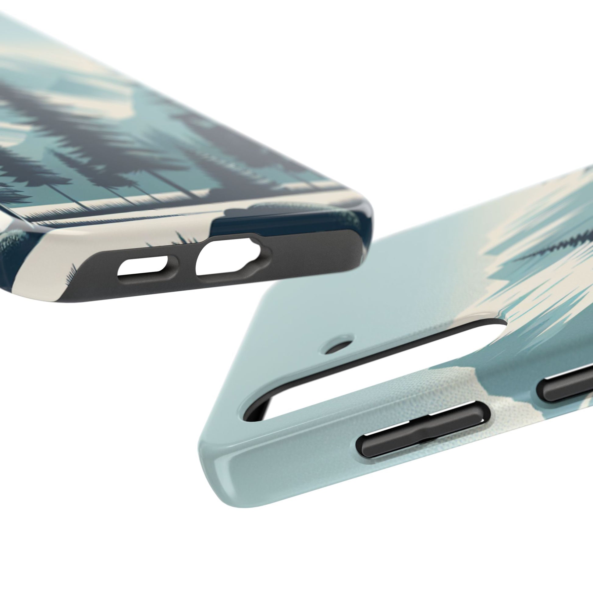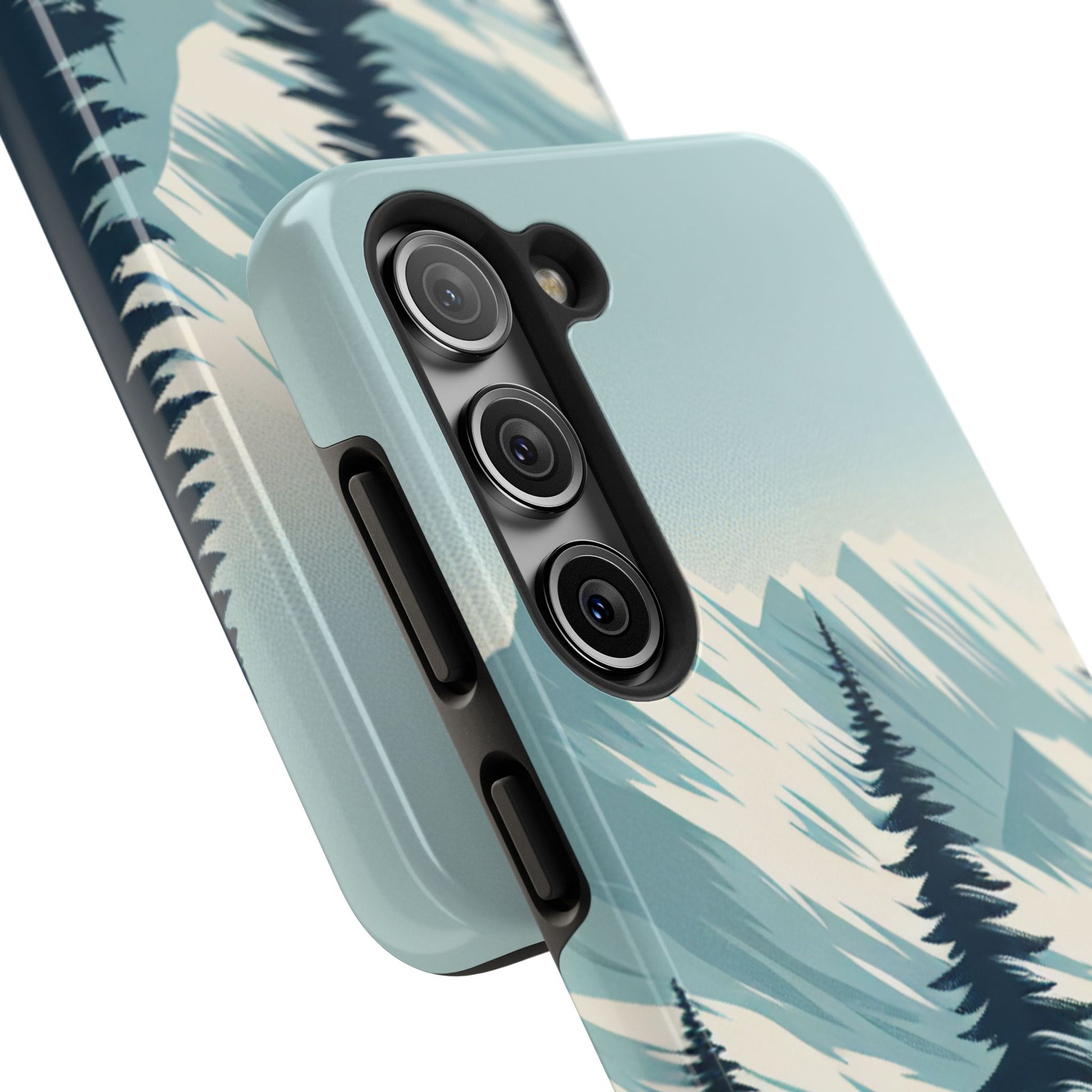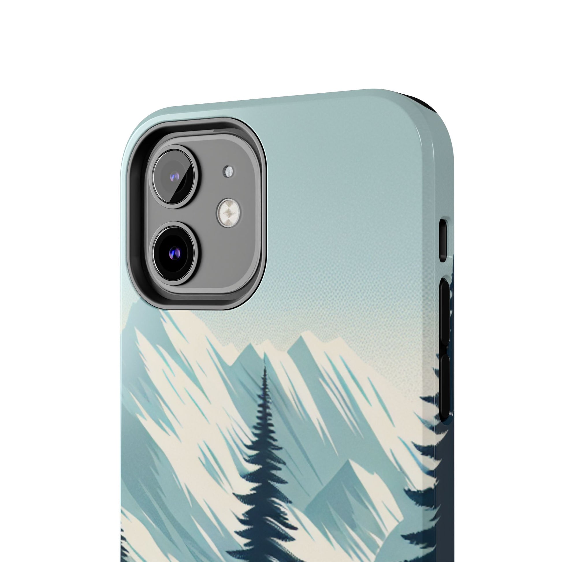冒険が待っているタフな携帯電話ケース - 雪山の頂上と松の木のデザイン