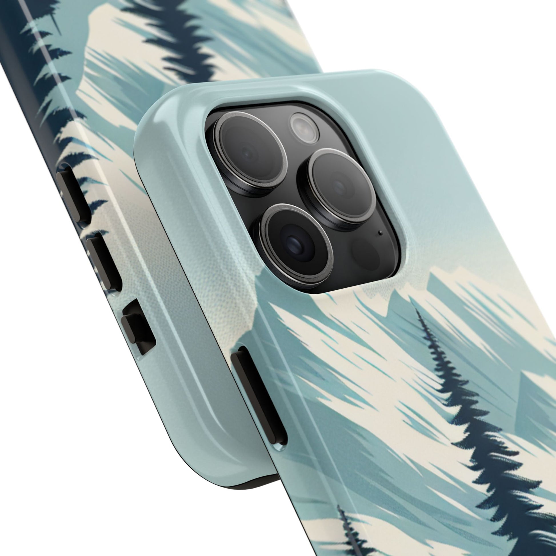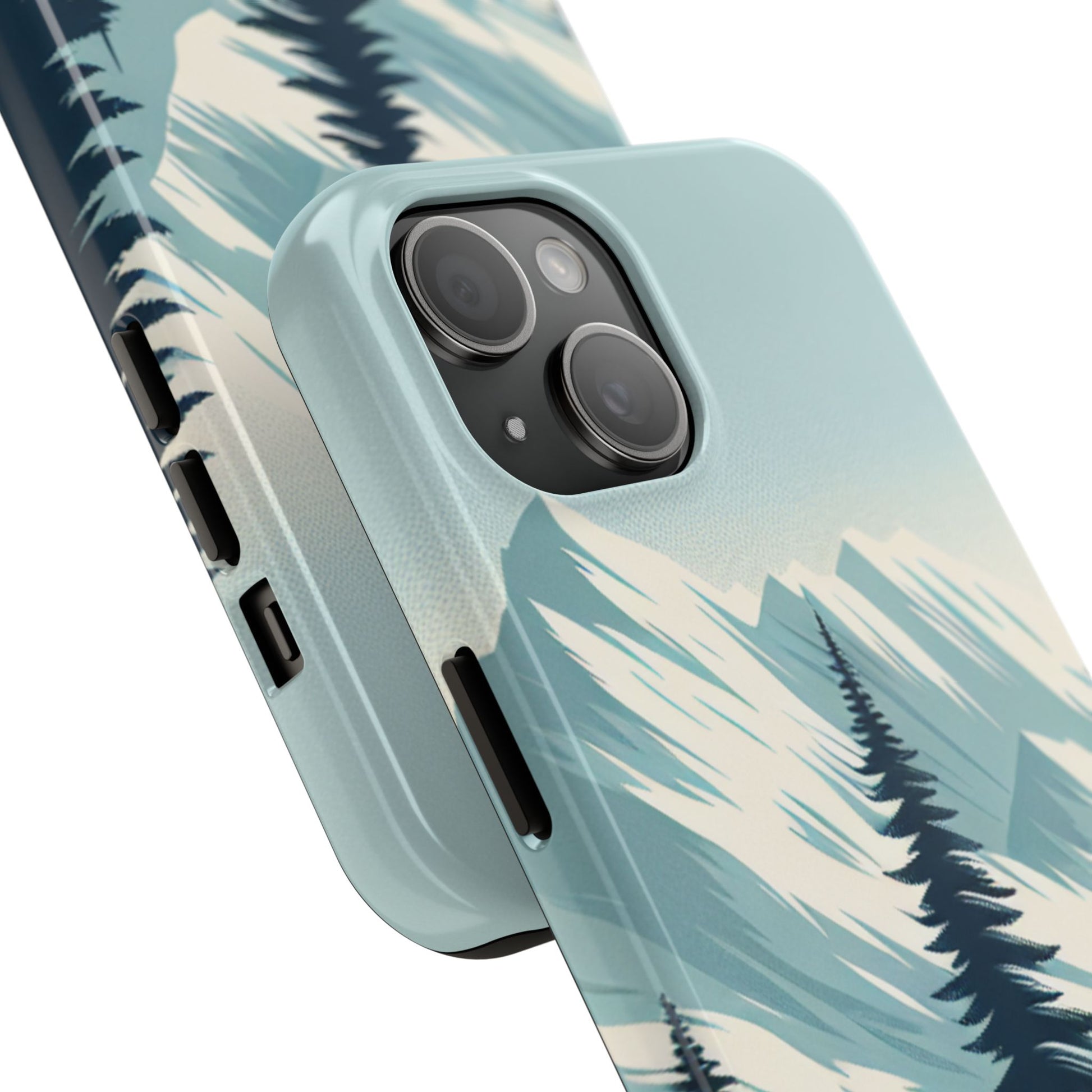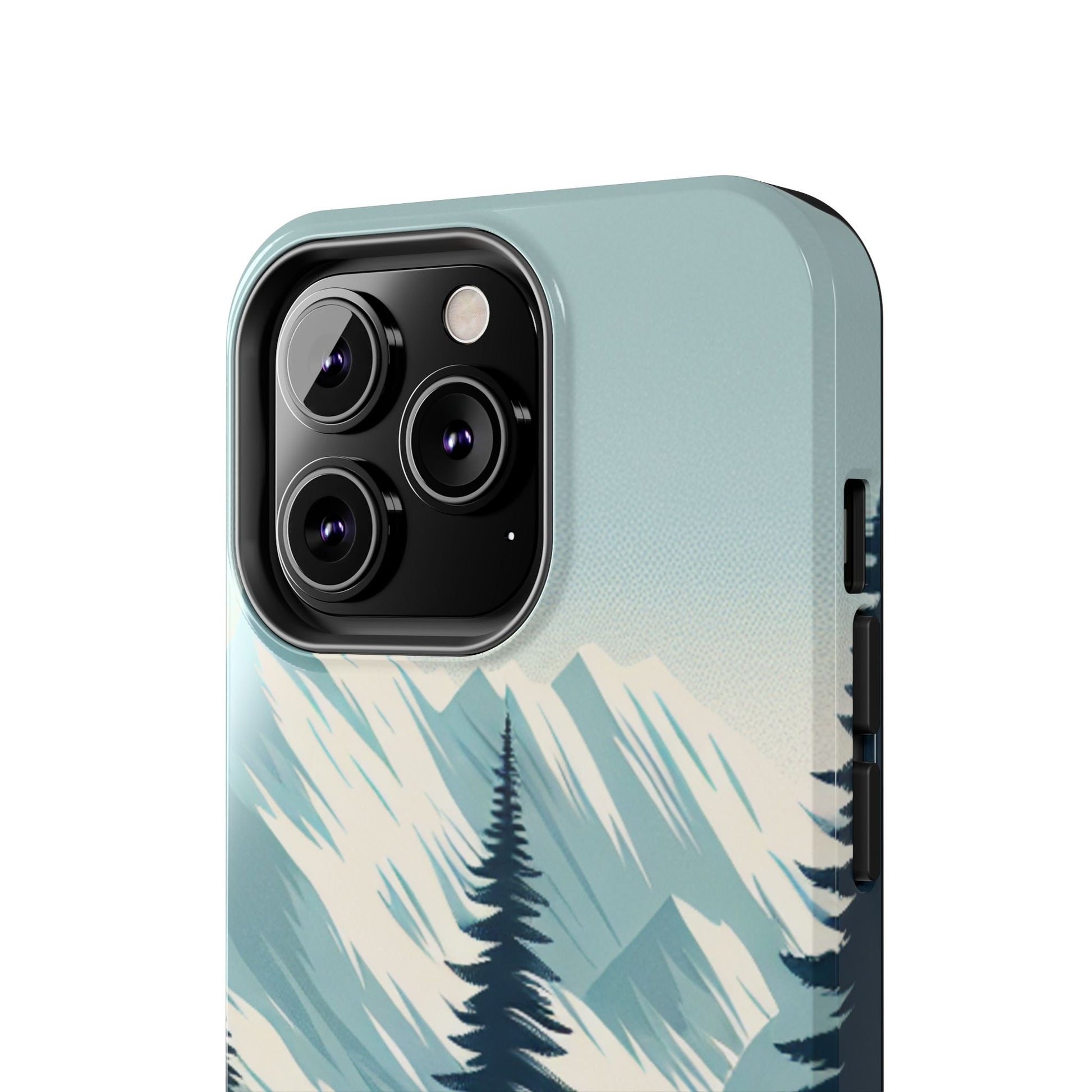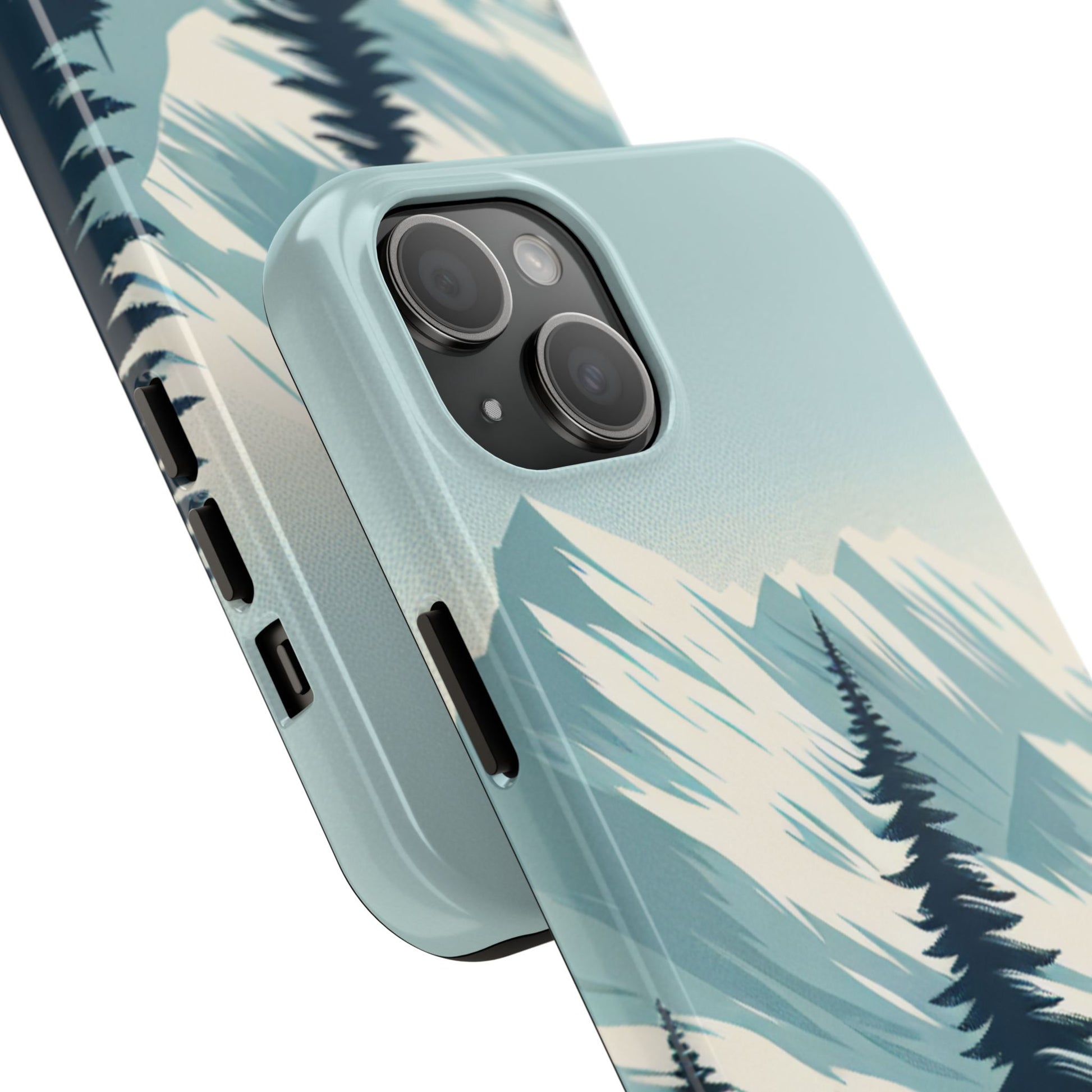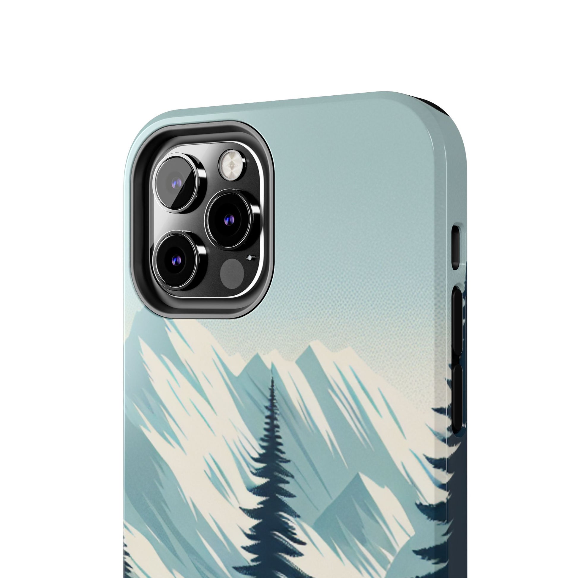 冒険が待っているタフな携帯電話ケース - 雪山の頂上と松の木のデザイン