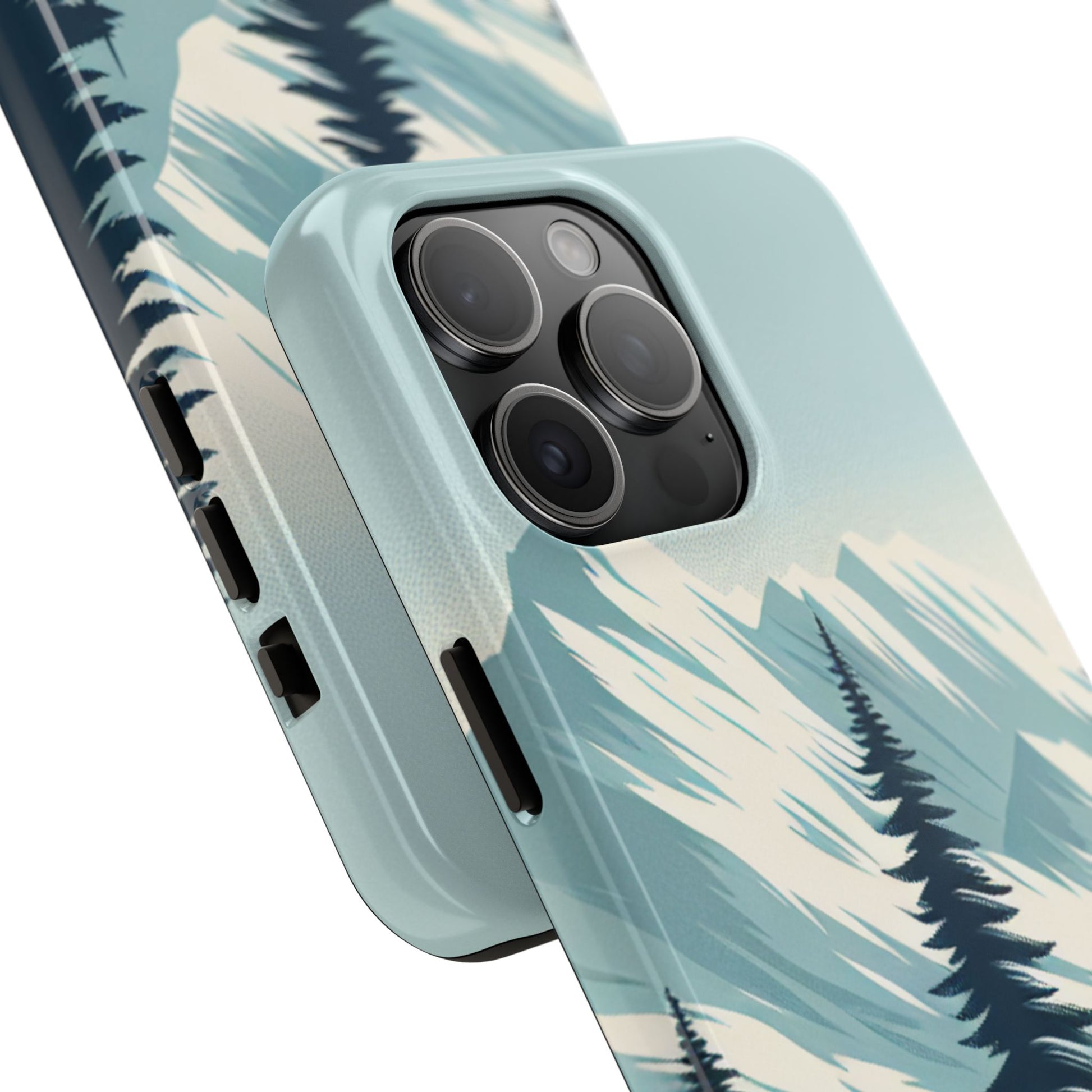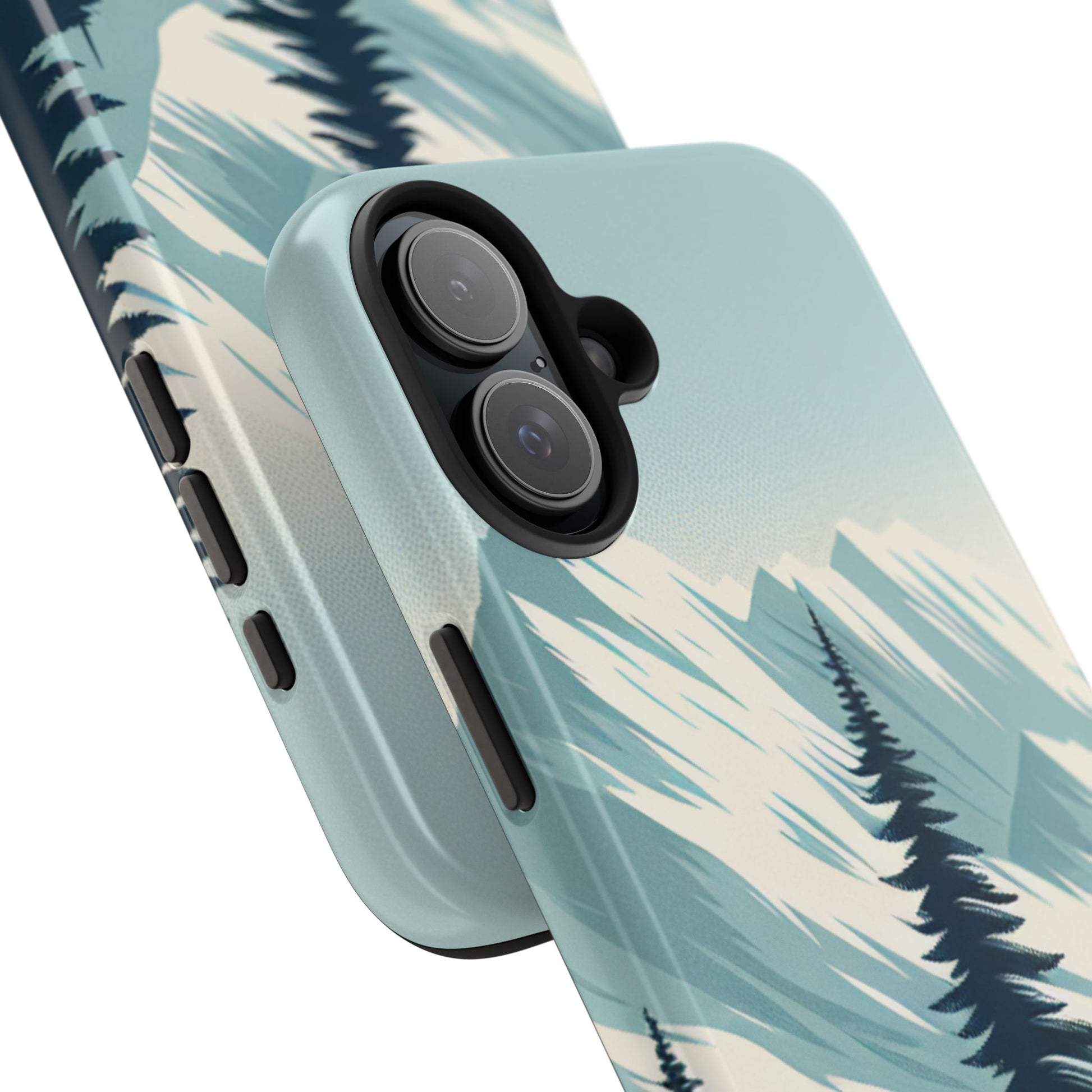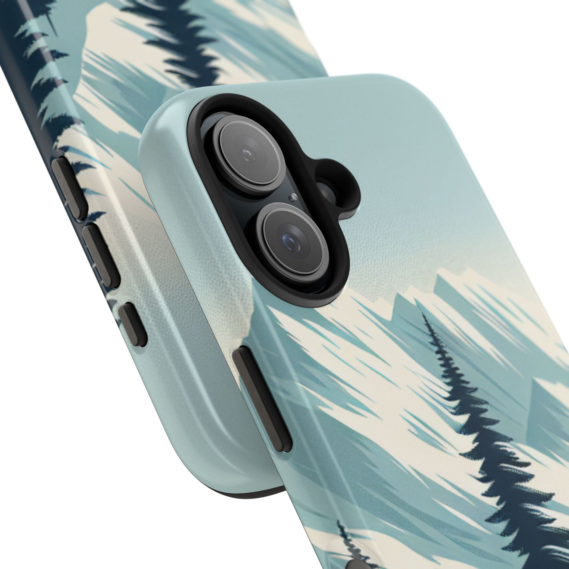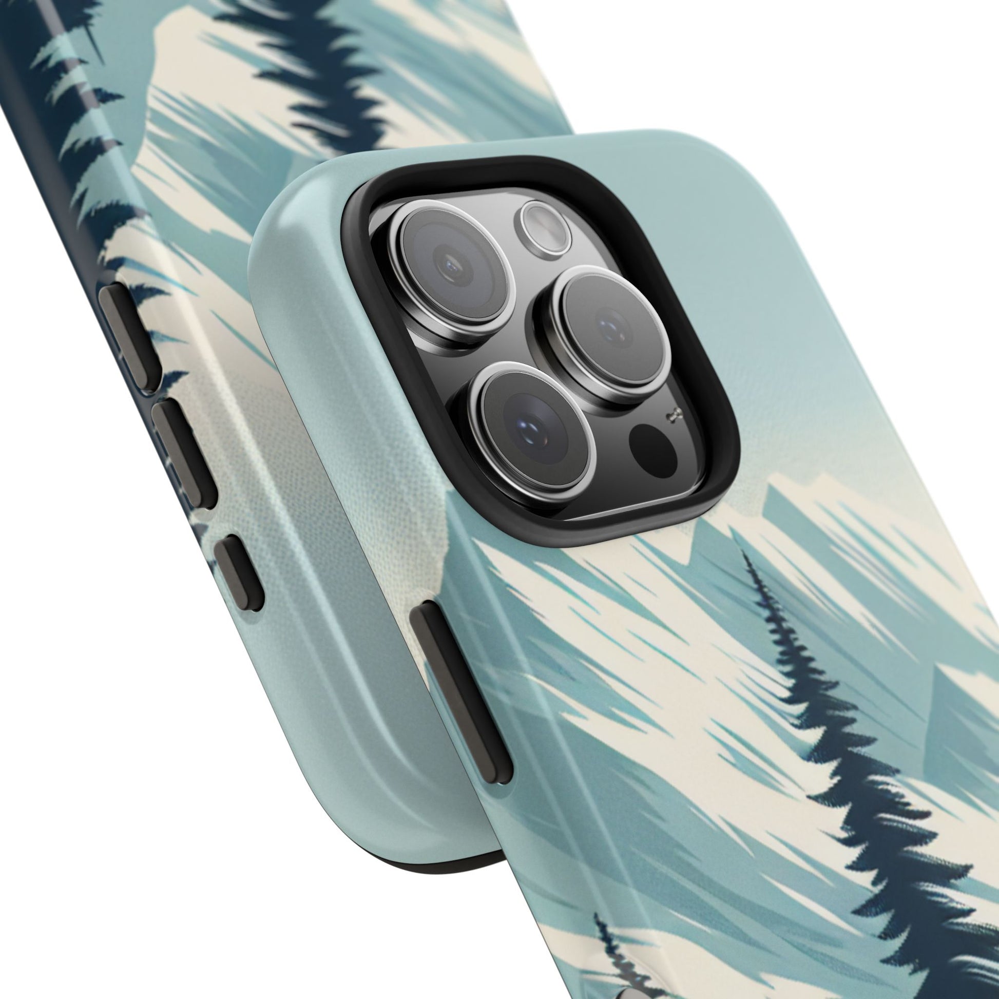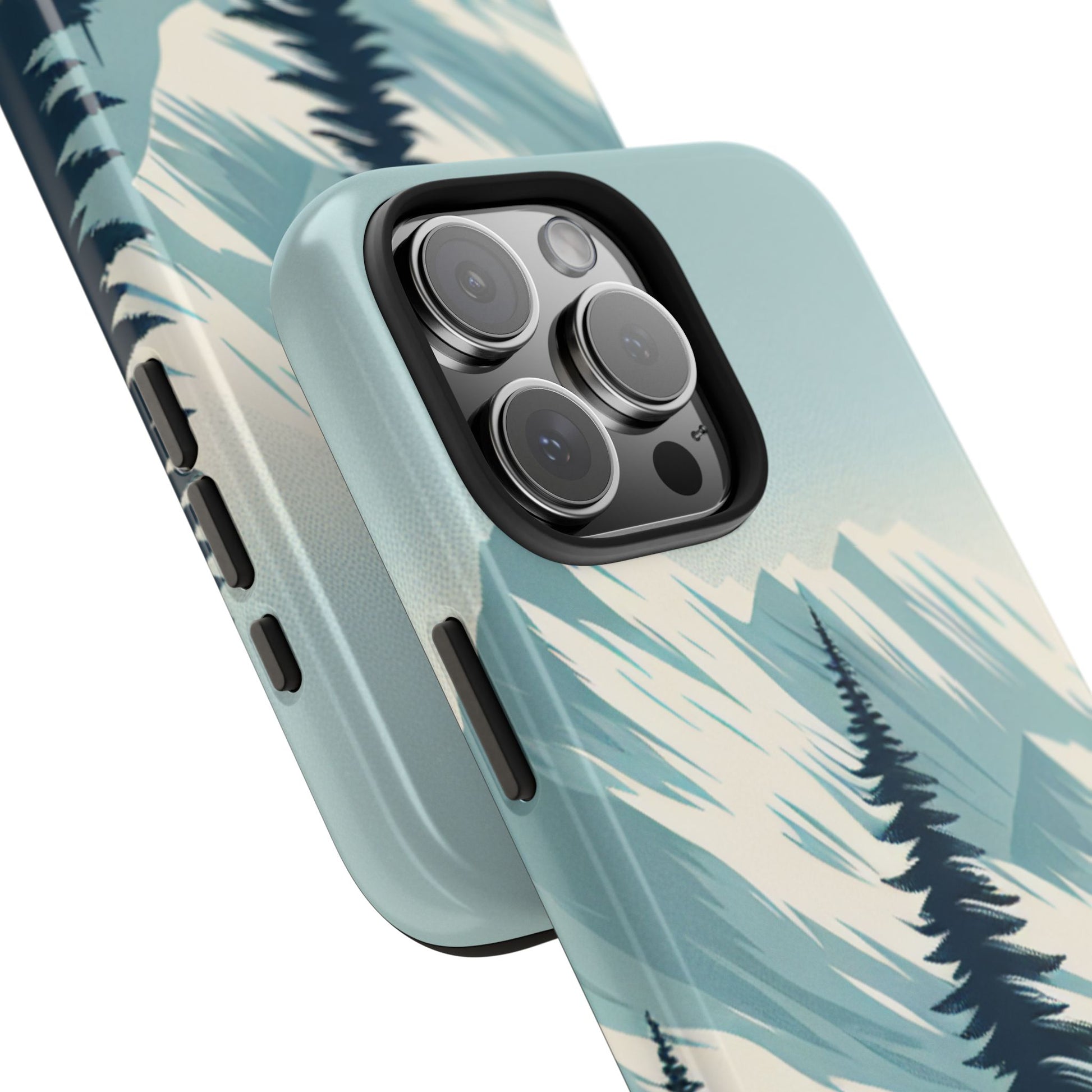 冒険が待っているタフな携帯電話ケース - 雪山の頂上と松の木のデザイン