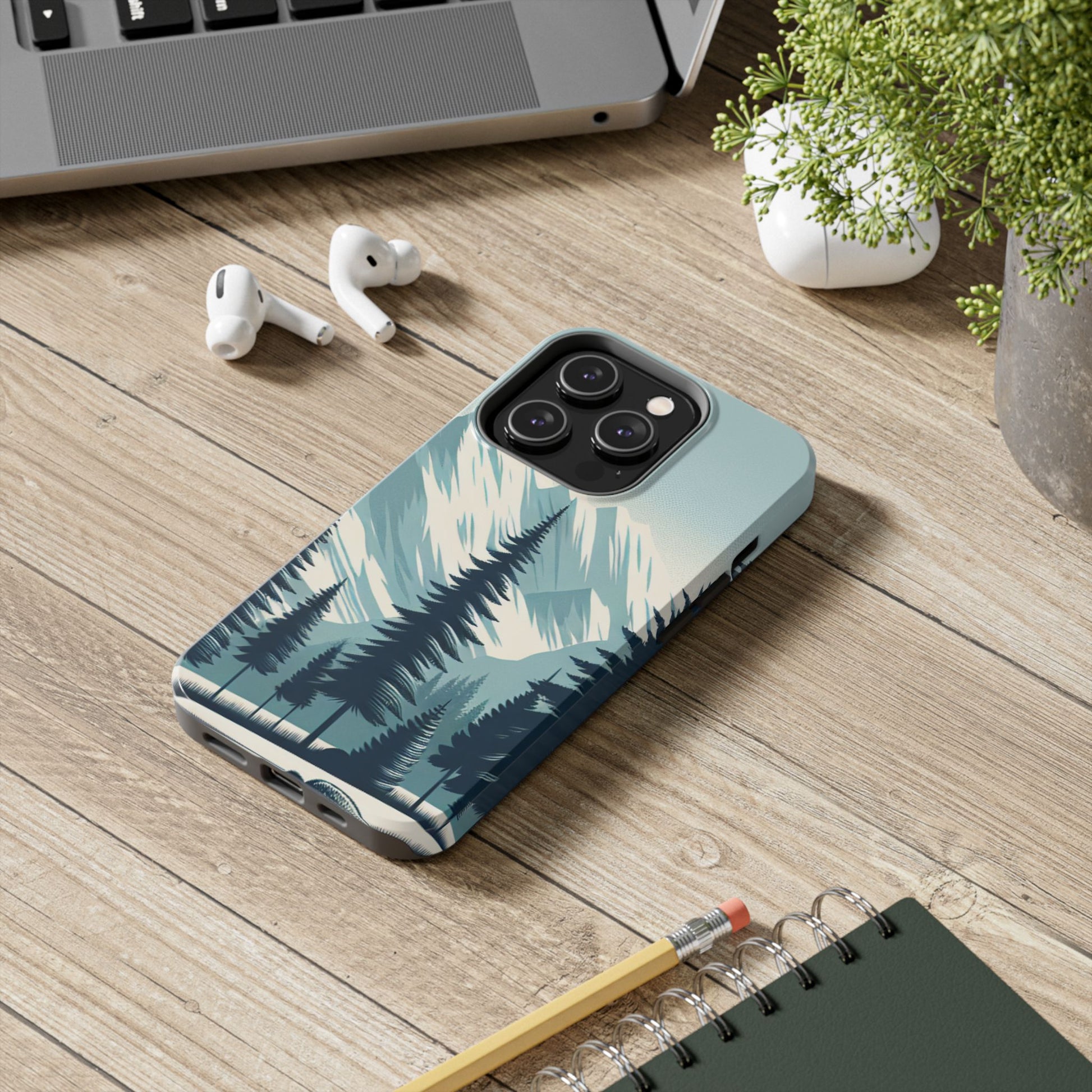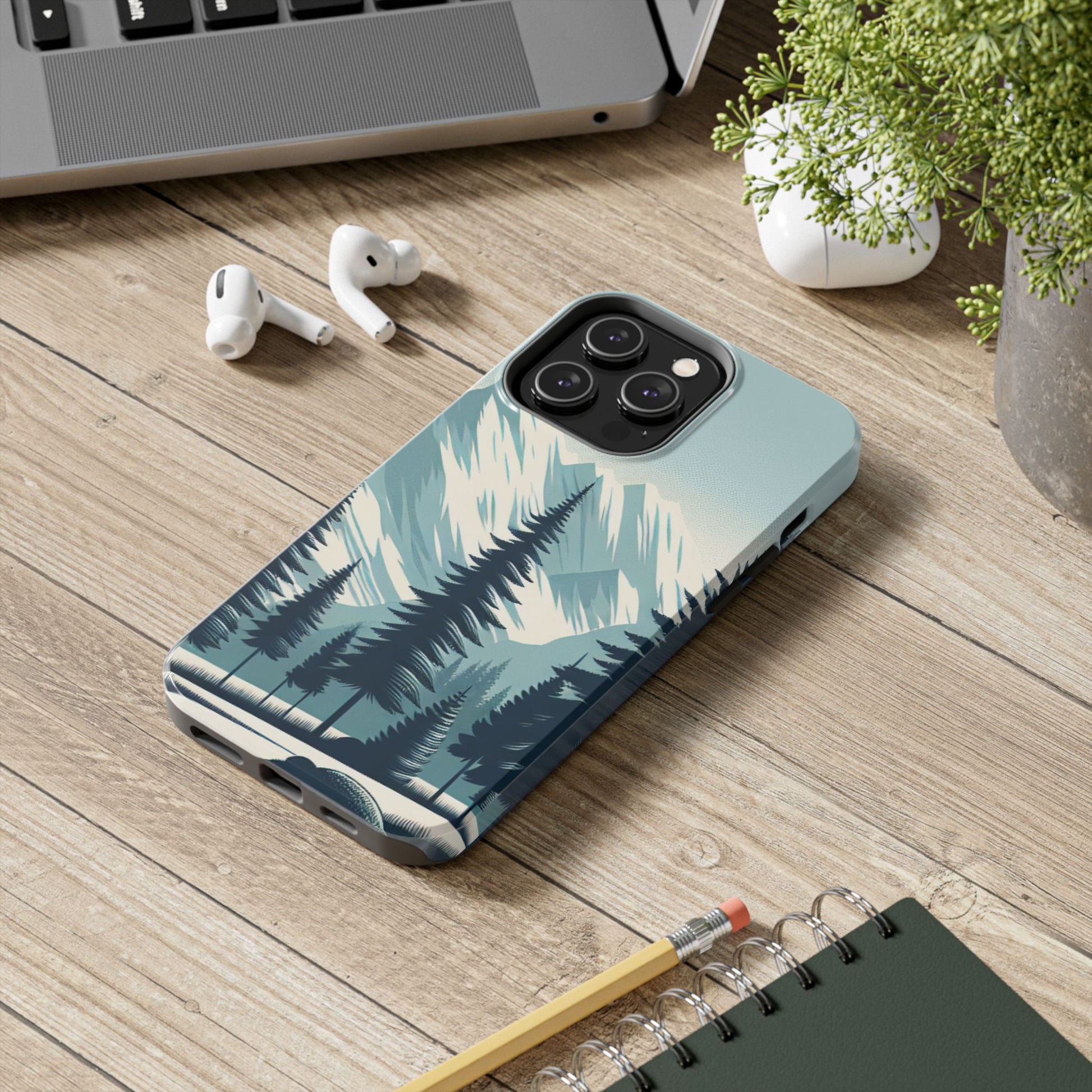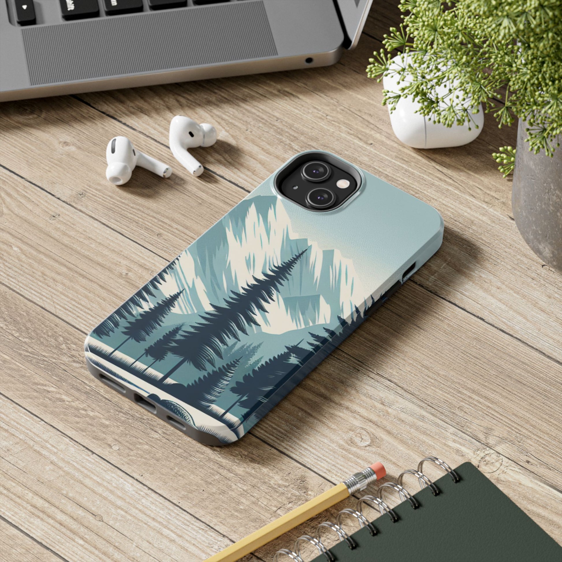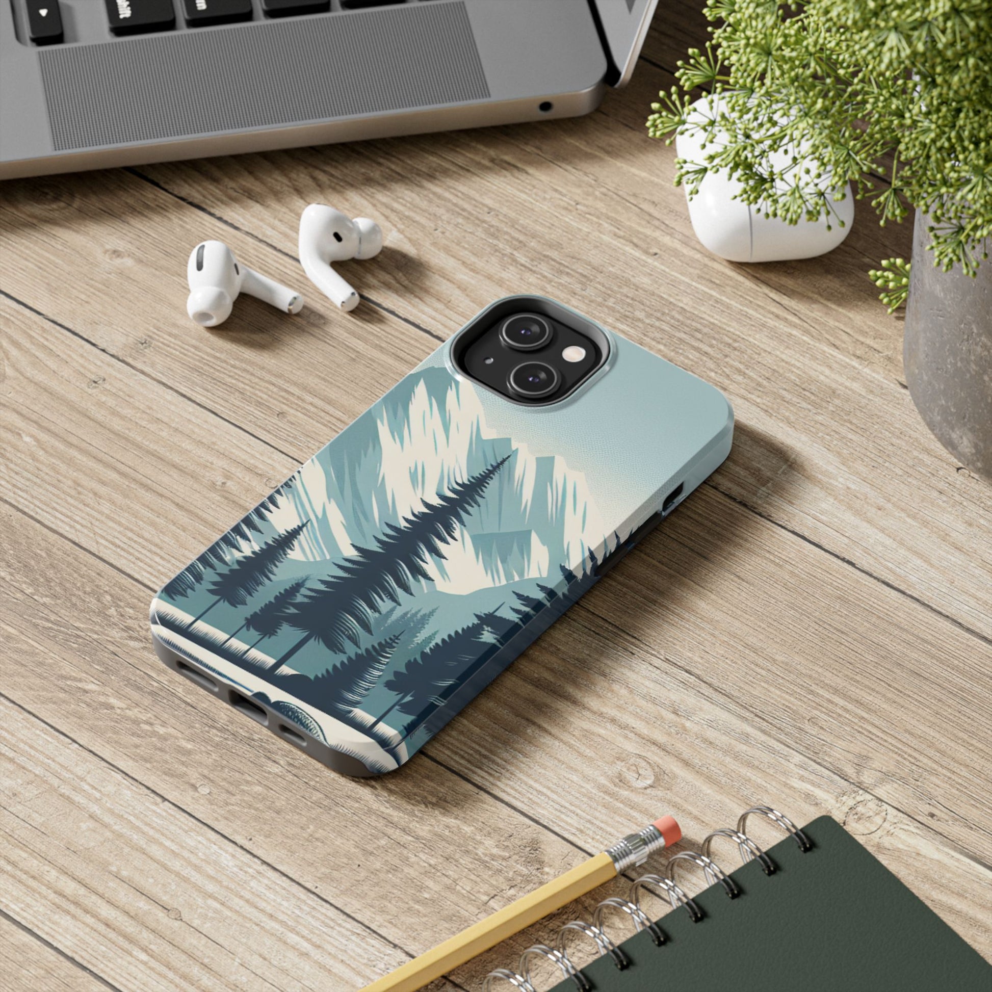 息を呑むような雪山の頂上と雄大な松の木々のデザインが特徴の、 Adventure Awaits Tough Phone Caseでスタイリッシュに携帯電話を保護しましょう。この耐久性の高いケースは、デバイスを安全に保ちながら冒険心を発揮したいアウトドア愛好家や自然愛好家に最適です。