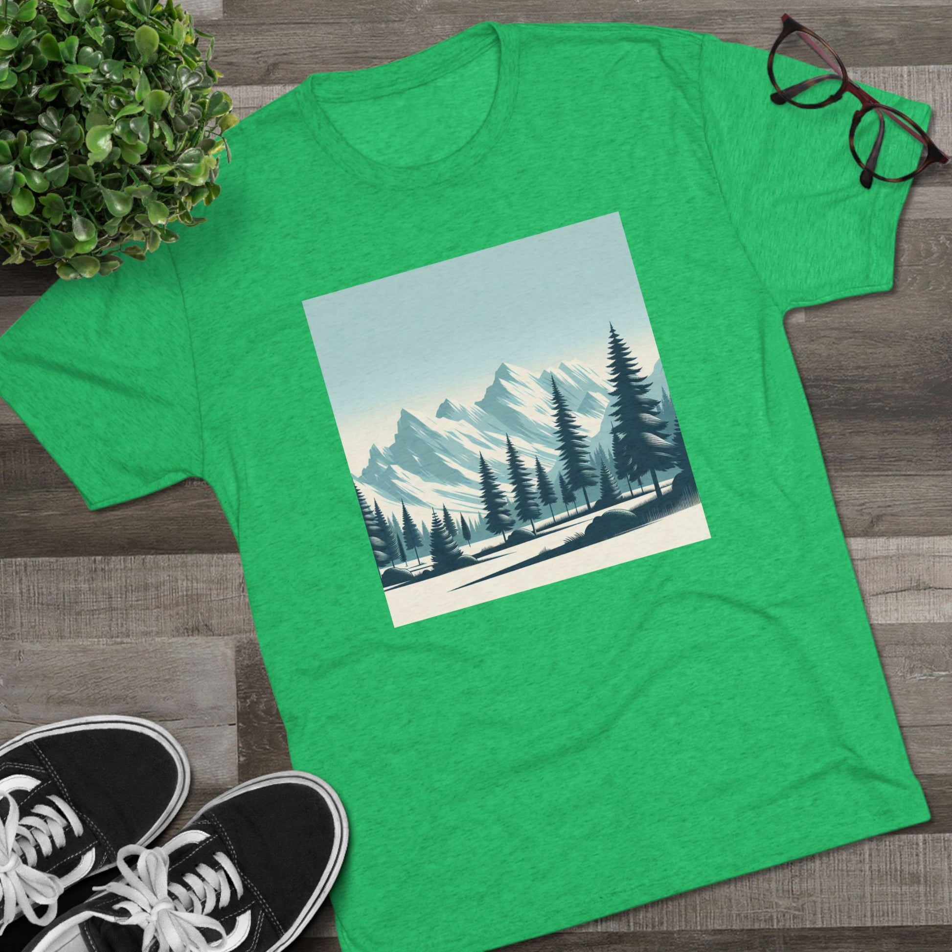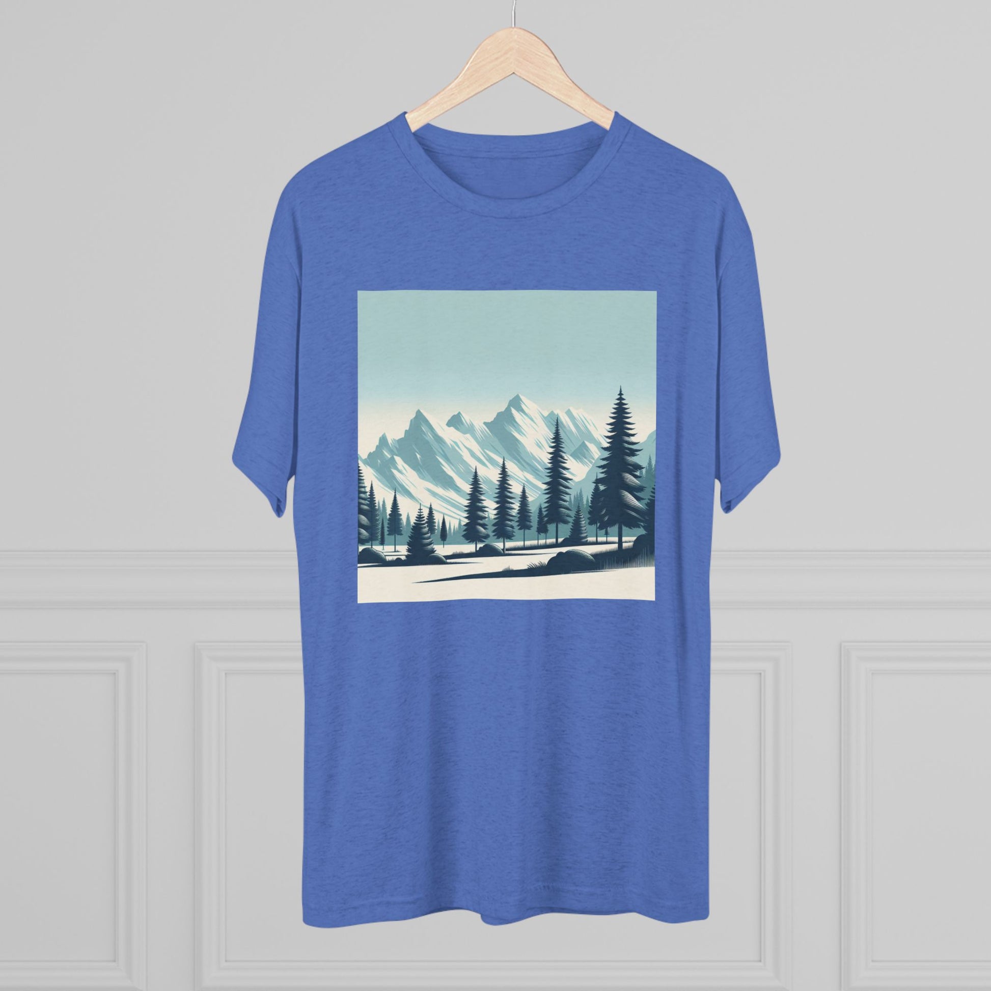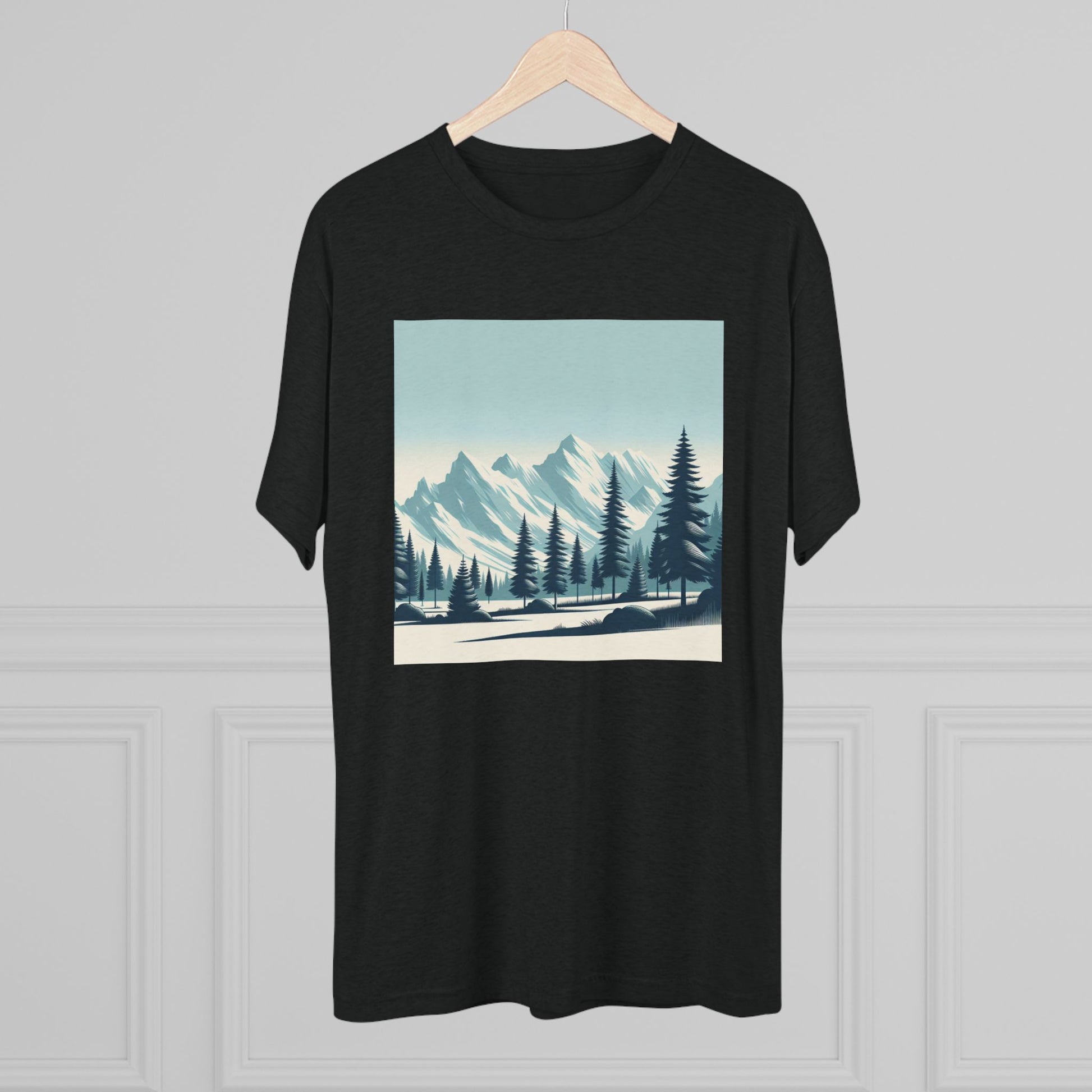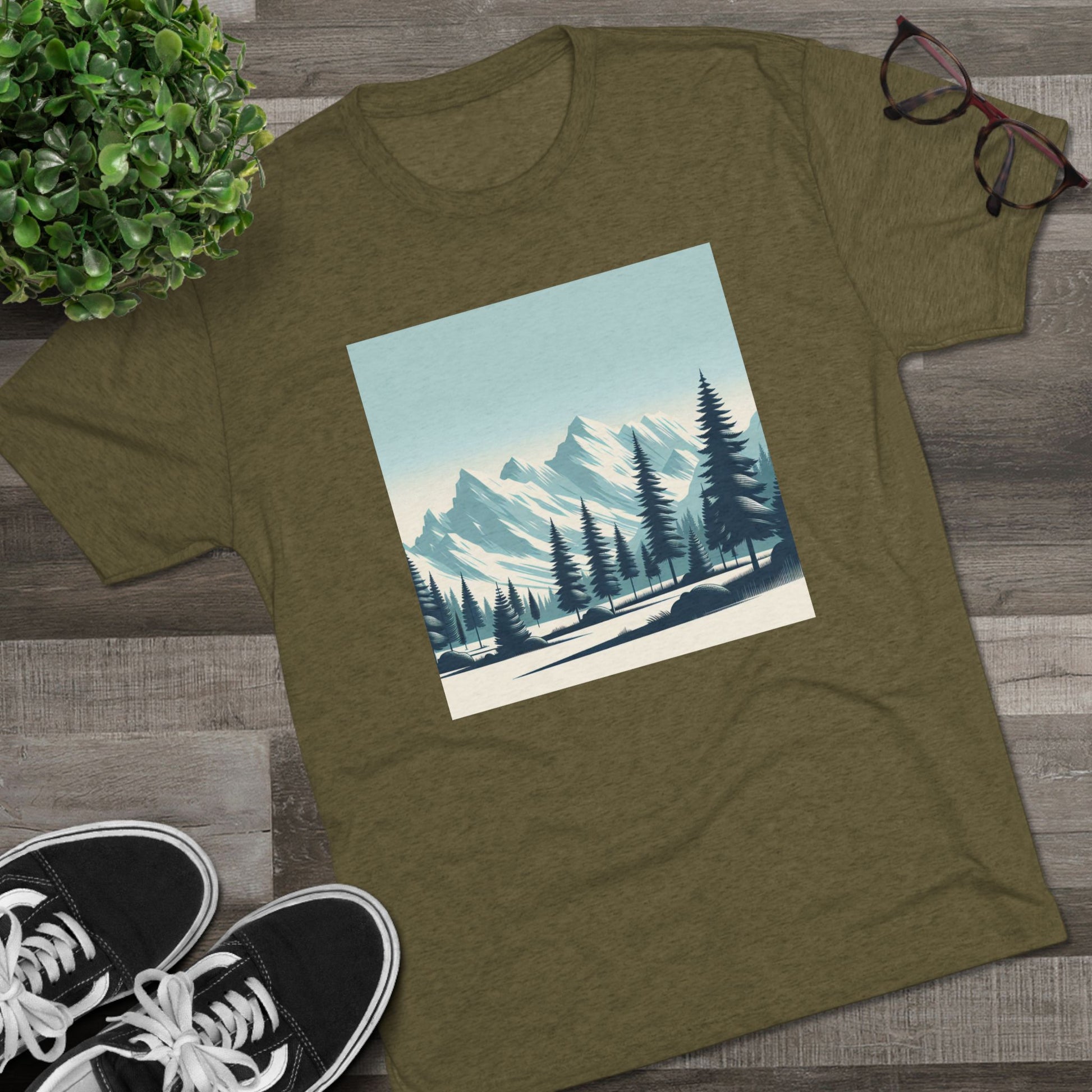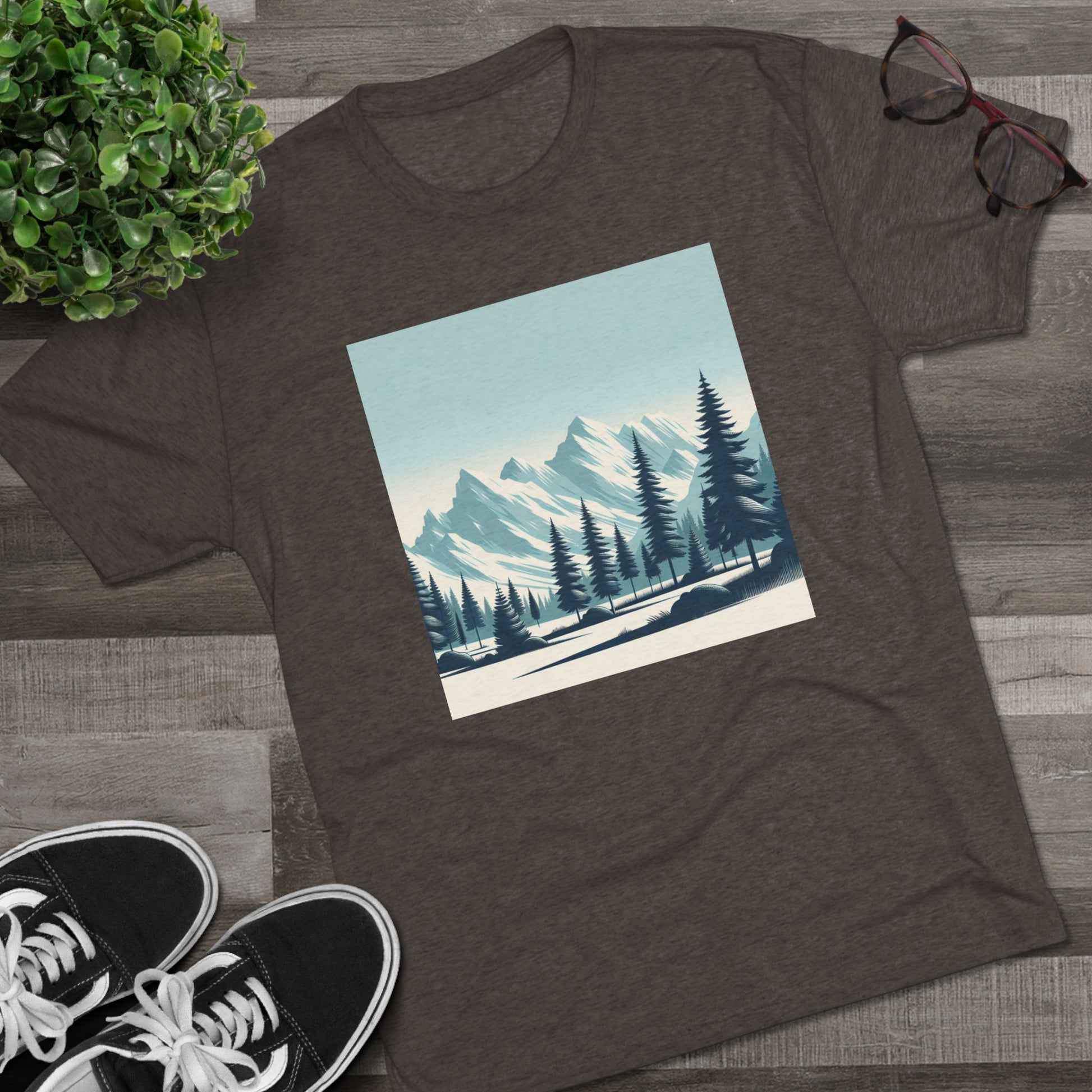 冒険が待っているユニセックストライブレンドクルーTシャツ – スノーウィーマウンテントップス&パインツリーデザイン