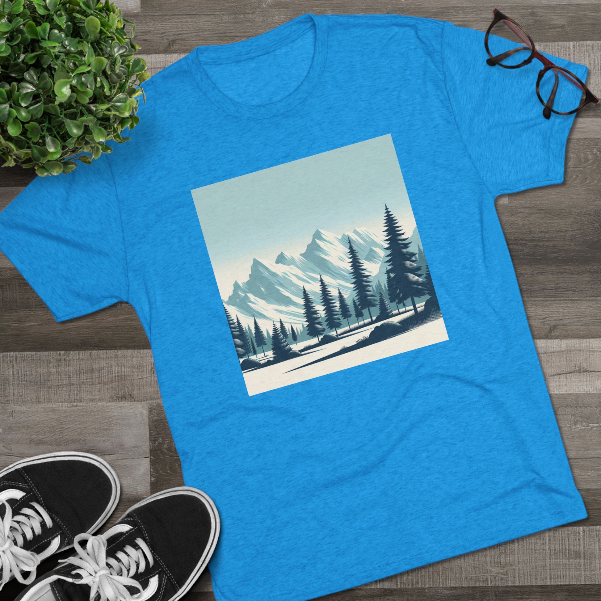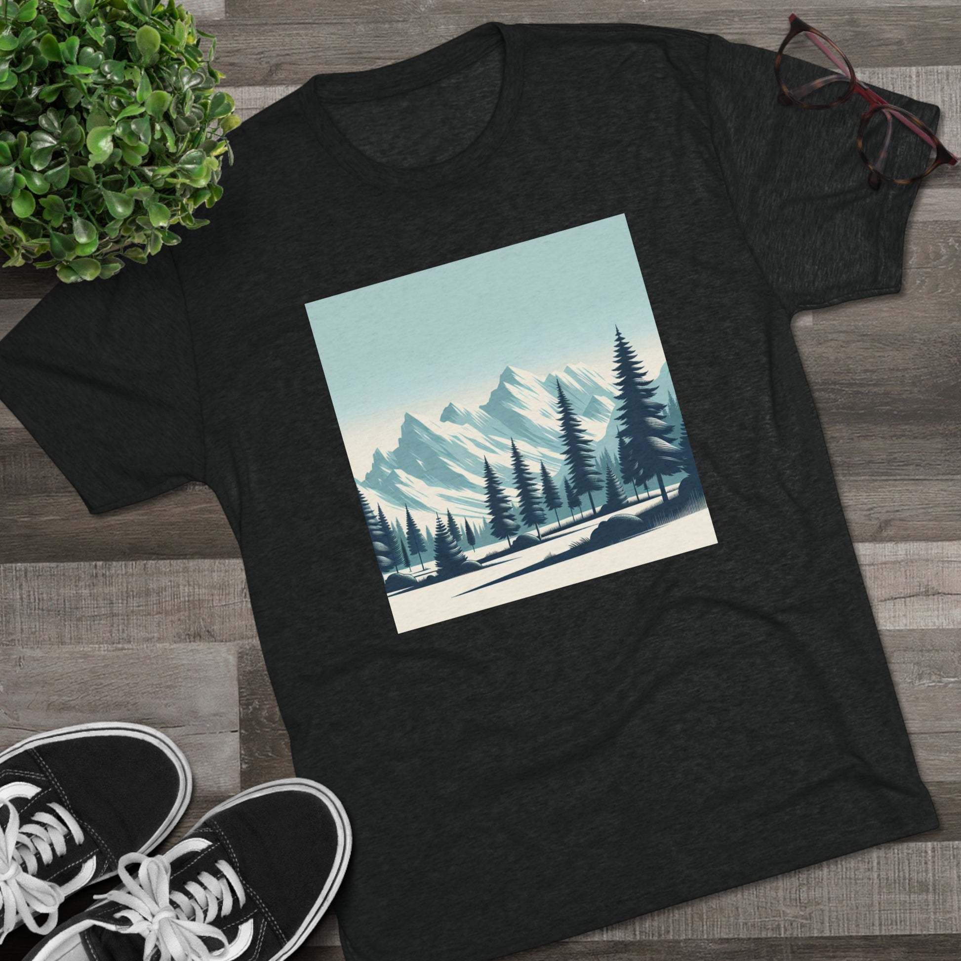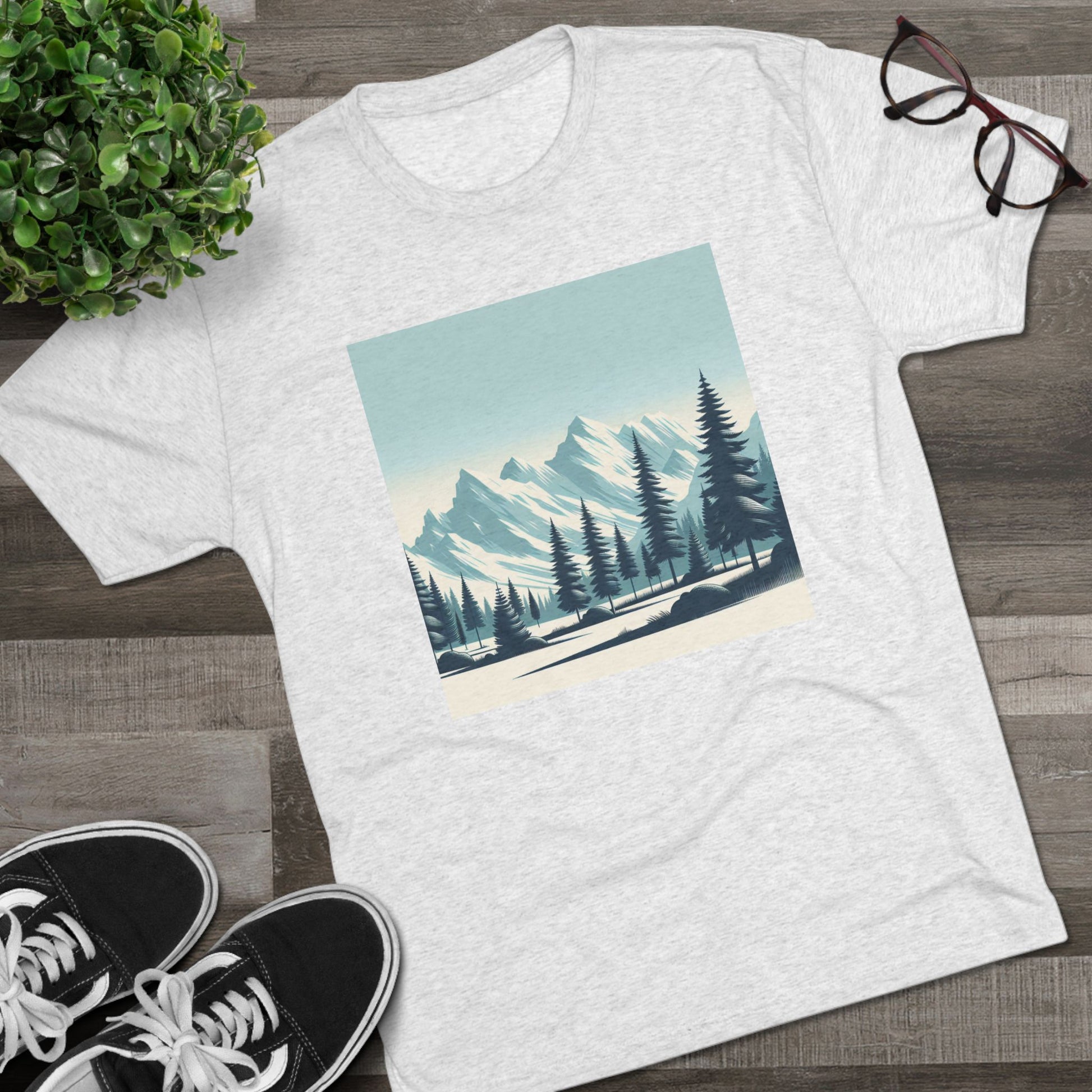 息を呑むような雪山の頂上と雄大な松の木々のデザインが特徴の、 Adventure Awaits ユニセックス トライブレンド クルー T シャツで、自然の静けさを体験してください。この T シャツは、アウトドア愛好家、ハイカー、そして大自然の美しさを愛する人々に最適です。