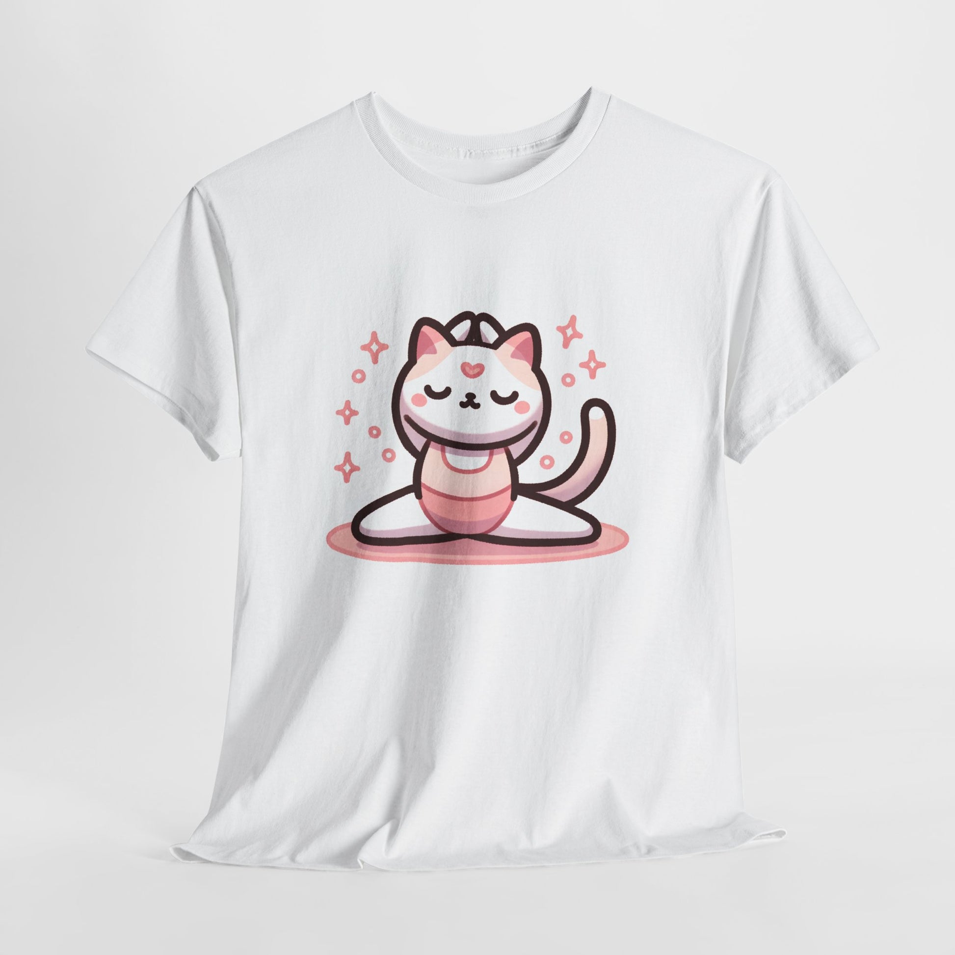 優雅な動き: ピンクのヨガ&バレエ猫ユニセックスTシャツ