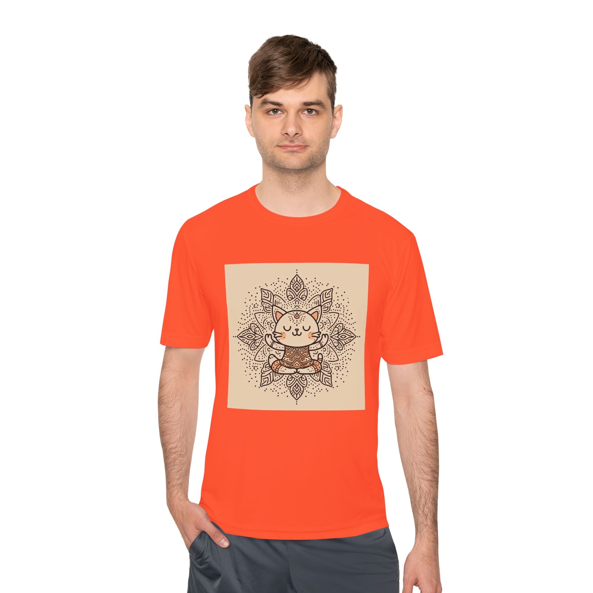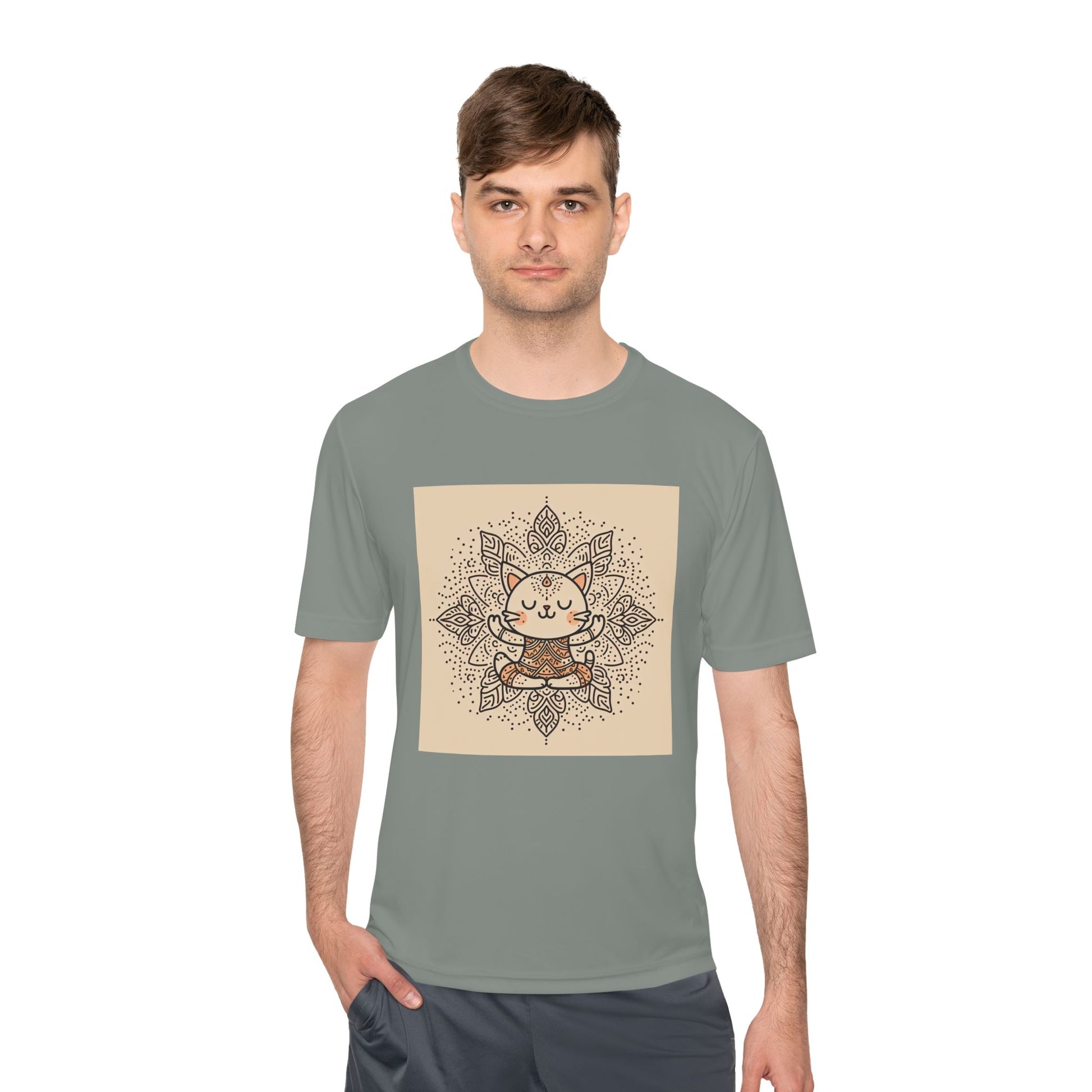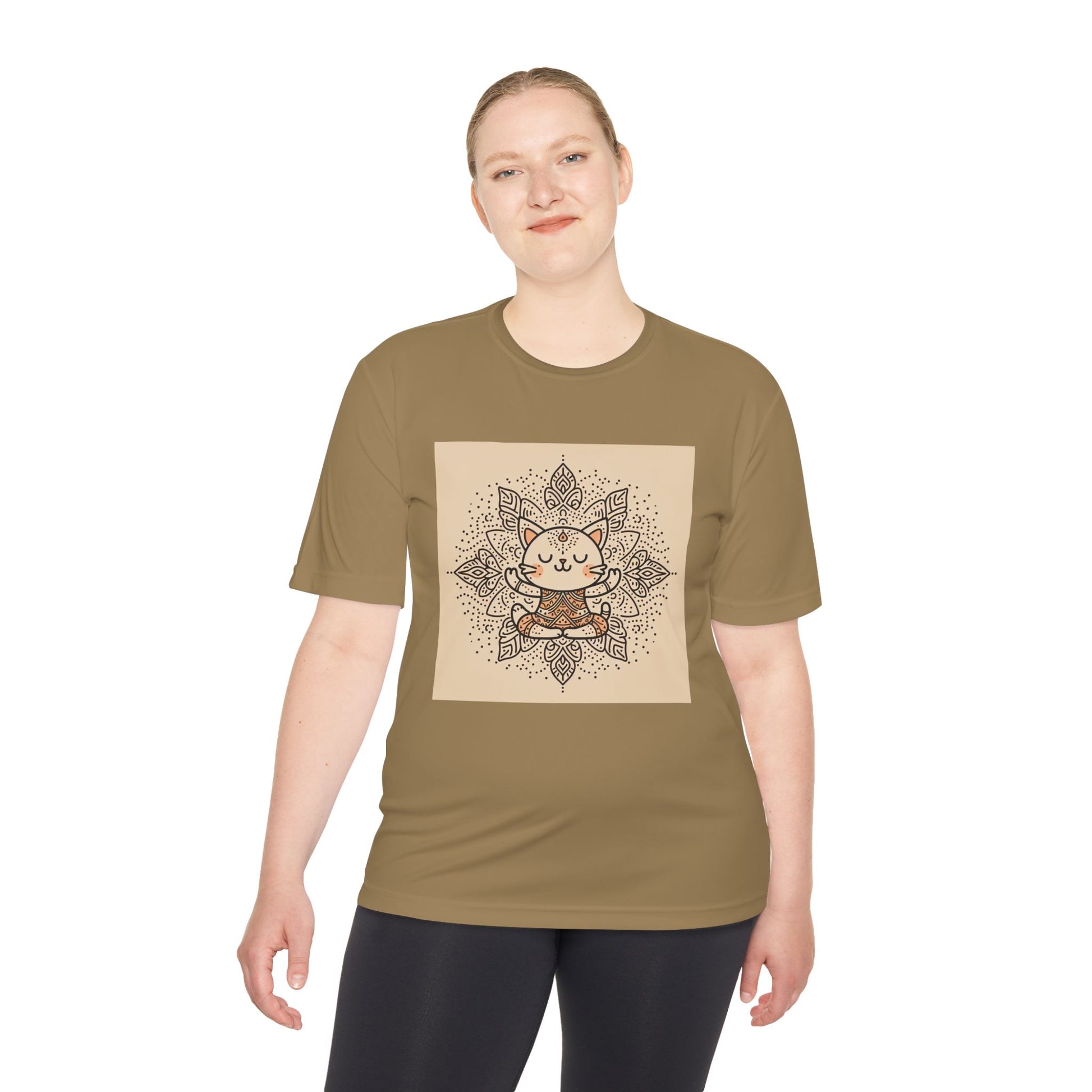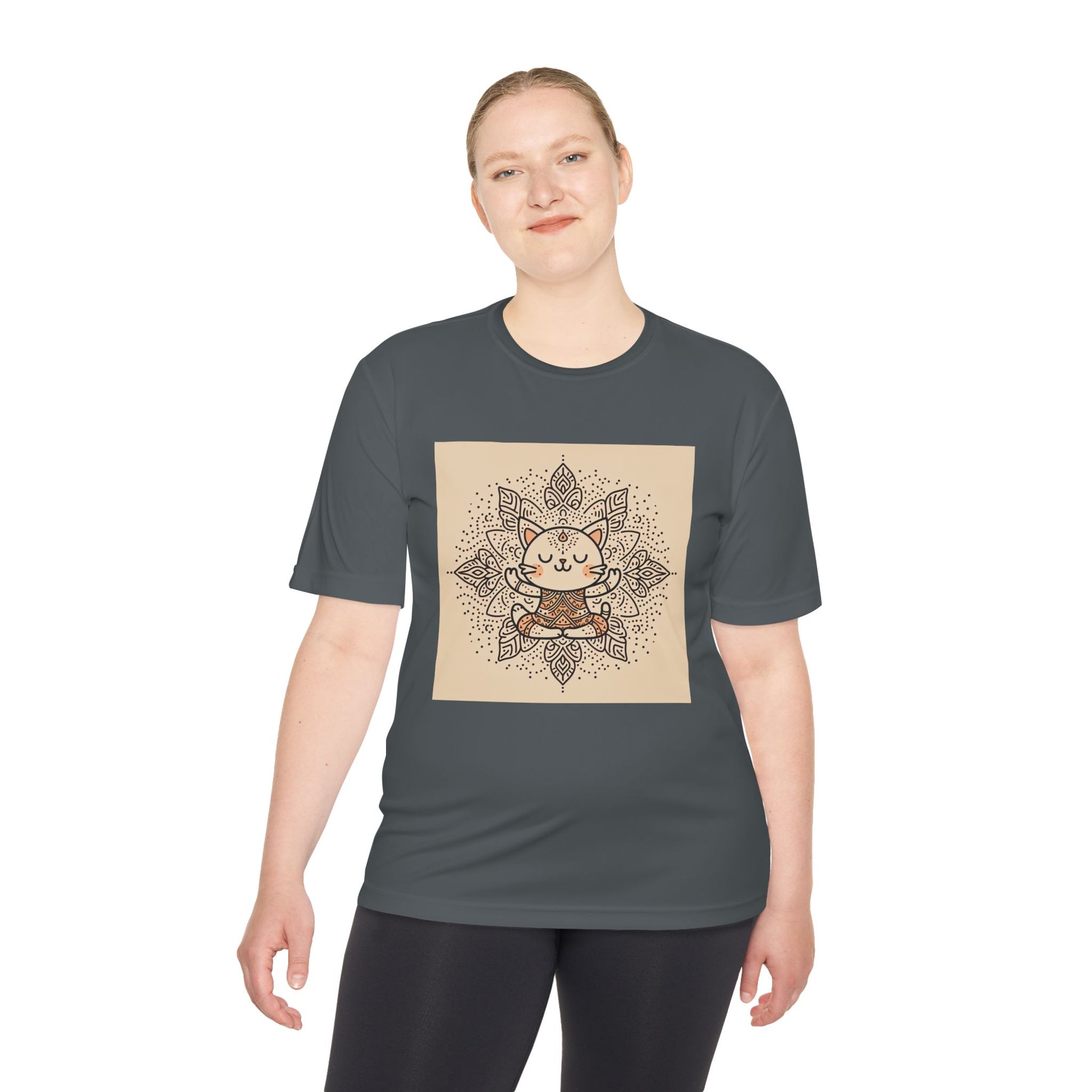Unisex Moisture-Wicking Tee with Meditating Cat Design - Fitness, Yoga, and Wellness T-Shirt